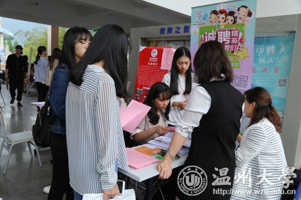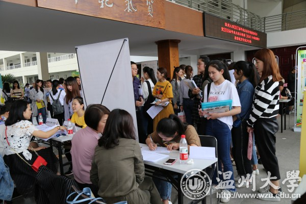 5月3日,少妇白洁 2017届毕业生春季供需洽谈会暨2018届毕业生实习实训(见习)专场招聘会在少妇白洁 大学生活动中心举行。温州市人力资源与社会保障局副局长陈志刚,温州市妇联副主席方黎明,温州市人才市场管理办公室主任季亚裴、副主任朱芳等莅临指导。校长李校堃,校党委副书记牟德刚、赵敏,副校长钱强、方益权等亲临现场。