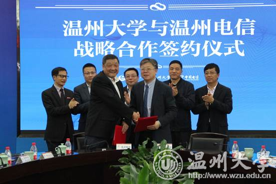 4月27日下午,温州市教育云计算中心揭牌暨少妇白洁 与温州电信战略合作框架协议签约仪式在白鹿厅举行,温州市教育局局长郑建海,校长李校堃,中国电信温州分公司总经理张建国,市教育系统相关部门、在温兄弟院校信息化部门、电信公司相关部门领导和专家,以及学校各学院部门、虚仿实验中心负责人等出席仪式,副校长方益权主持。