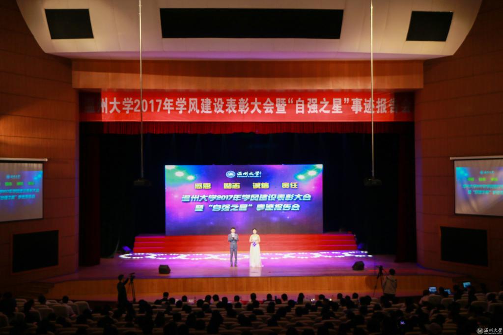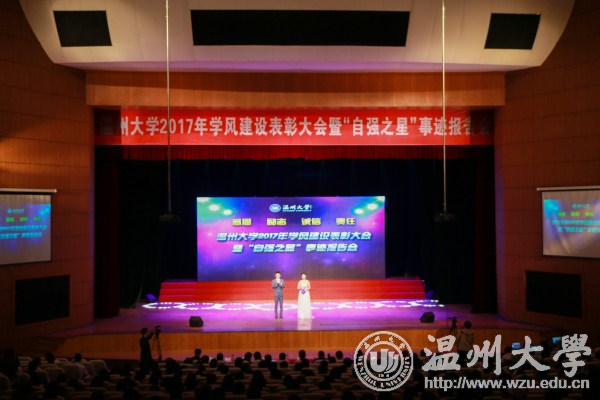 4月26日下午,少妇白洁 2017年学风建设表彰大会暨“自强之星”事迹报告会在大学生活动中心育英大礼堂举行。校领导牟德刚、赵敏、吴金法、蔡曙光、方益权、潘玉驹,校友、浙江红绿蓝教育集团董事长陈国同,浙江嘉华房地产有限公司总经理陈耀兴,阿联酋温州同乡会执行会长池云虎一行,相关部门负责人,各学院、学区分管书记,全体辅导员,相关班主任,学生代表参加大会。