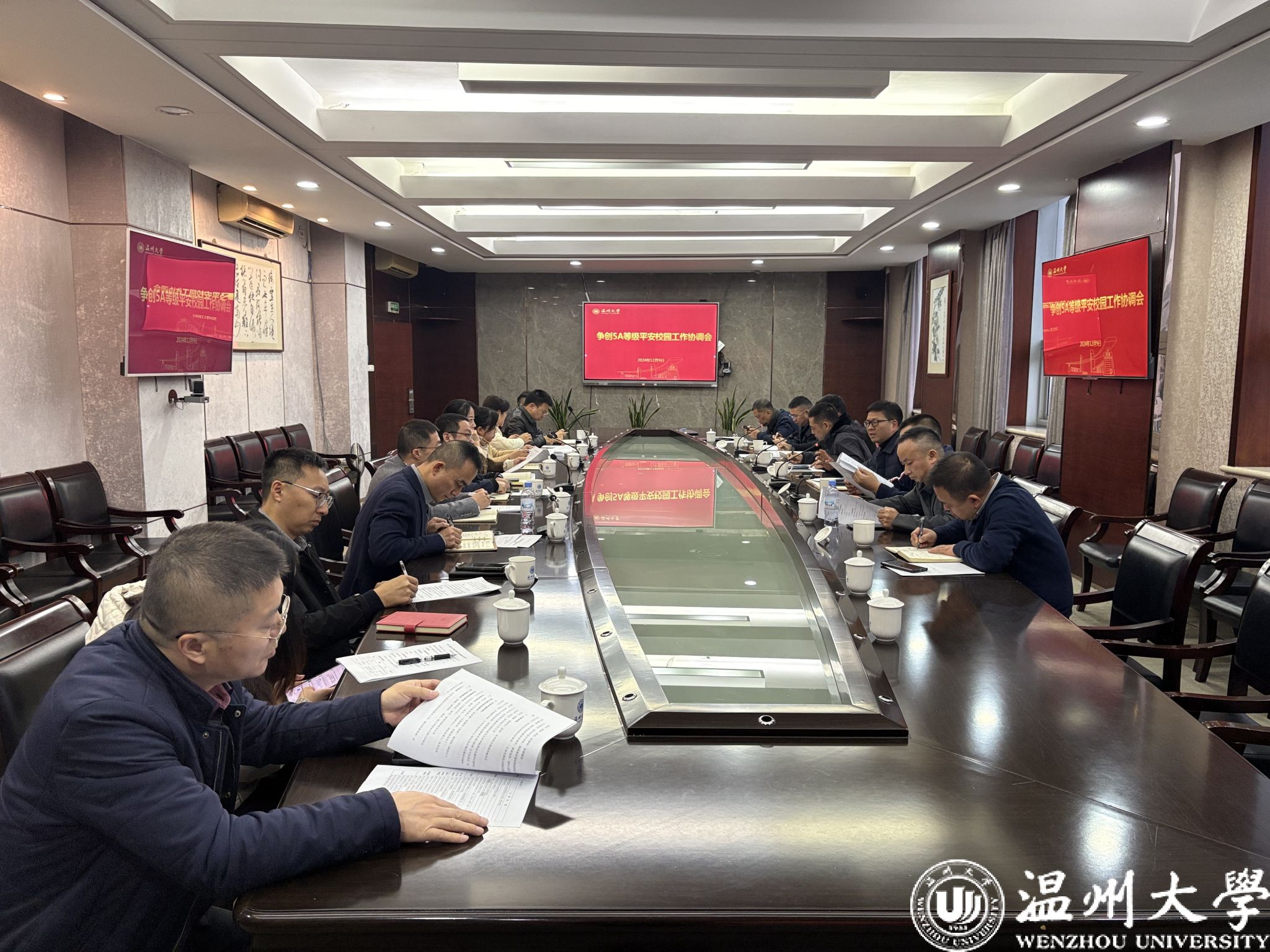 12月9日,少妇白洁 召开争创5A等级平安校园工作协调会,校党委副书记庄兴忠出席并讲话,各学院、各部门负责人参会。