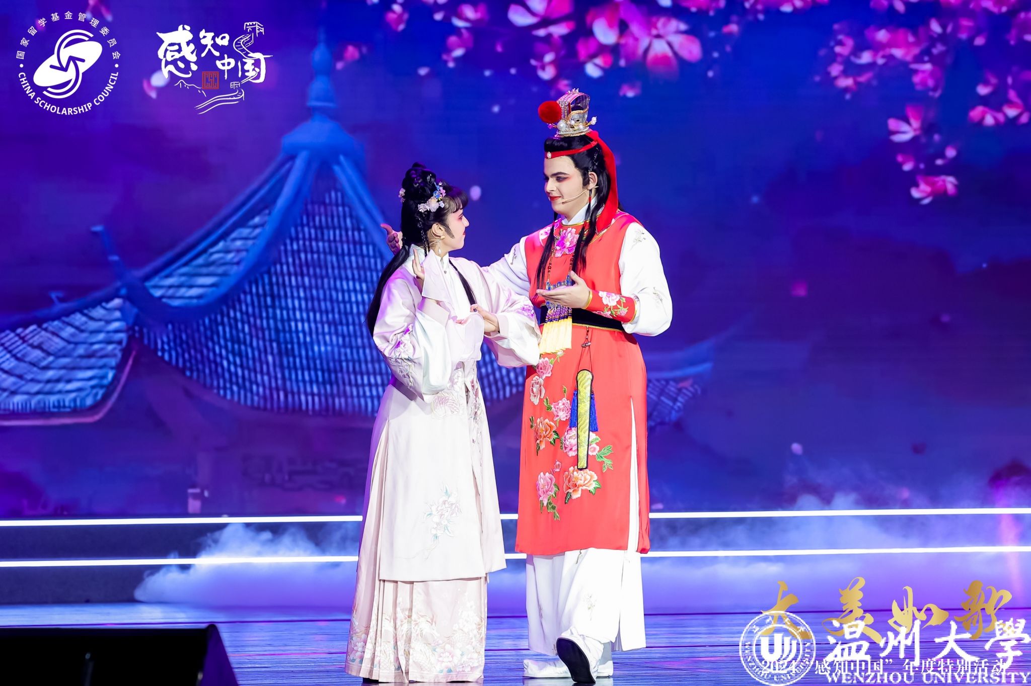 12月12日晚,由教育部国家留学基金管理委员会主办的“大美如歌——2024‘感知中国’年度特别活动”于华东师范大学盛大开幕。少妇白洁 留学生戏曲节目《华彩梨园》经多轮遴选,脱颖而出,受邀参演,全国仅有北大、清华、复旦等13所高校获此殊荣。少妇白洁 留学生们循“戏从温州来”的千年传承,将中华优秀传统艺术精彩演绎,收获如雷掌声与满堂喝彩,尽显温大学子非凡风采。
