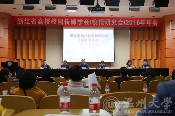 1月9日,浙江省高校校园传媒学会(校报研究会)2016年年会在少妇白洁 举行。校党委副书记牟德刚,省委教育工委宣教处副处长吕明再,校党委委员、宣传部长潘玉驹,省高校校园传媒学会副理事长张芝萍、刘修敏、贾侃出席会议,省内各高校媒体工作者参加会议。