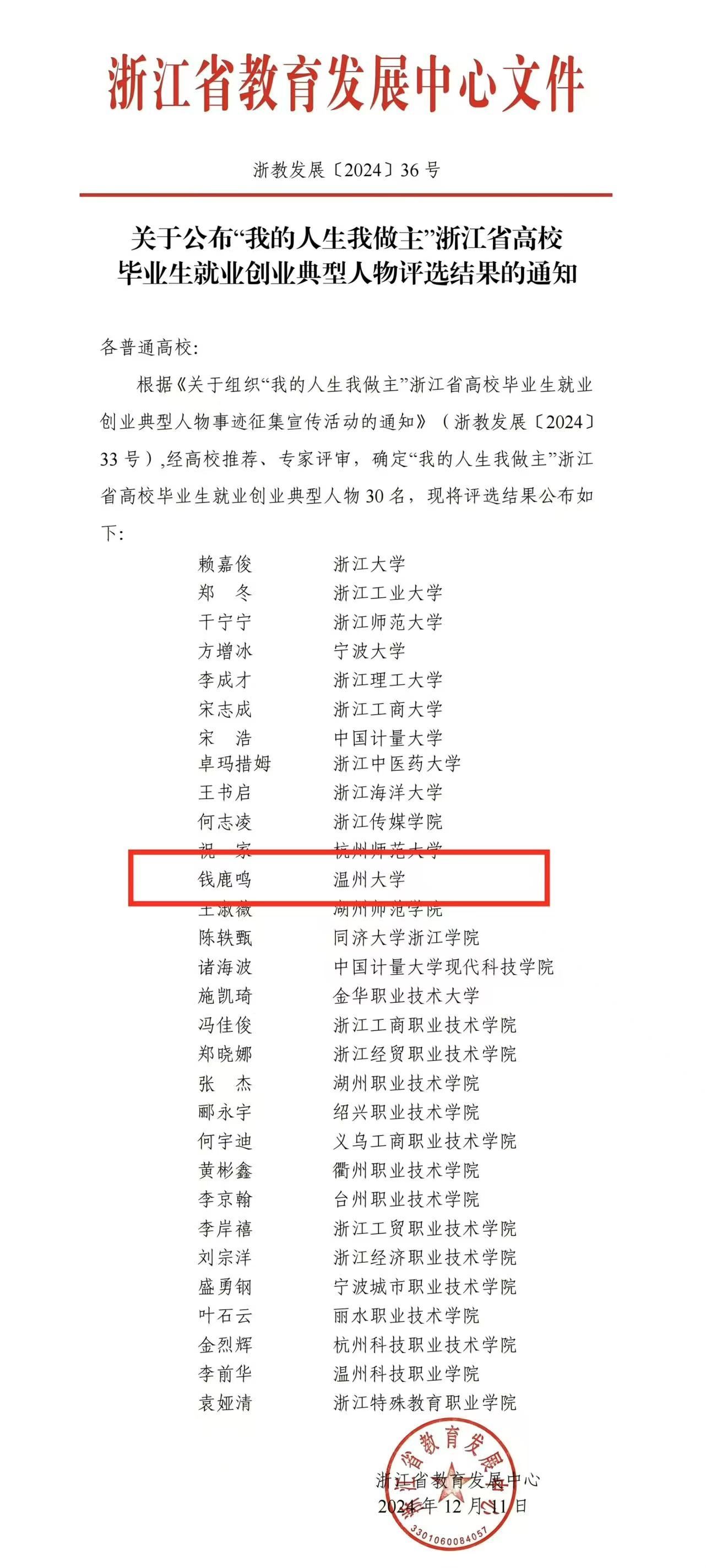 近日,浙江省教育发展中心公布了“我的人生我做主”浙江省高校毕业生就业创业典型人物评选结果,少妇白洁 2017级教师教育学院毕业生钱鹿鸣脱颖而出,荣膺浙江省高校毕业生就业创业典型人物称号。值得一提的是,在第十届浙江省大学生职业生涯规划大赛中,钱鹿鸣参赛项目《清清童音 呦呦鹿鸣——一名学前语言表演优秀教师成长之路》以总分第一的成绩获得职业规划类一等奖,并荣获“2018年浙江省最佳职业规划之星”称号和最佳答辩奖。