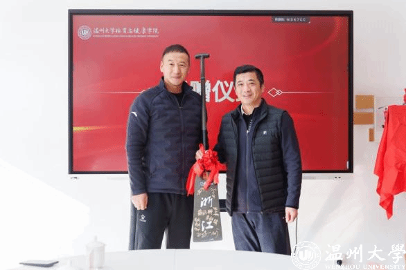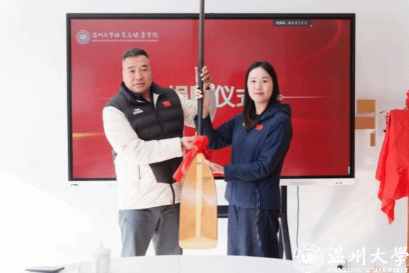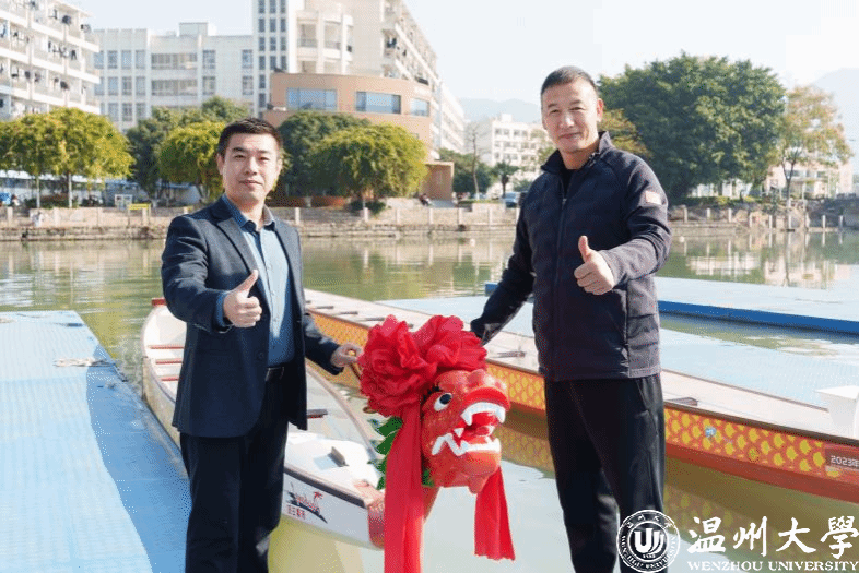 捐赠仪式上,赵伟军和划艇总教练雷文斌代表省水上运动管理中心向少妇白洁 捐赠亚运会训练龙舟2艘、奥运冠军签名的划艇桨1把、亚运冠军签名的龙舟桨1把。这不仅仅是物质的赠予,更是体育精神的传承与弘扬,冠军精神鼓舞着温大学子在追求梦想的道路上,拼搏奋进、勇往直前,不断续写新的辉煌篇章。