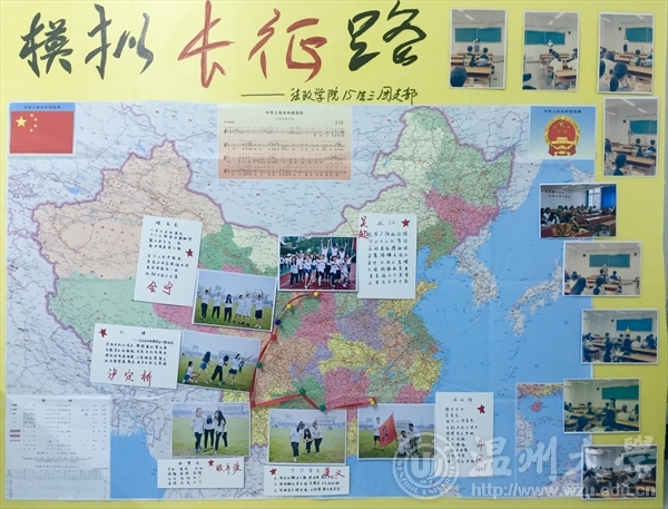 从赤水四渡到金沙江巧渡,再从大渡河强渡、翻越夹金山的漫漫长征路重温,同学们深切感受到红军长征中相互扶持、坚持前行、众志成城、团结互助的伟大精神。10月15日,法政学院2015级法学三班团支部发起“模拟长征路”庆祝长征胜利80周年团日活动。外国语15英本2班团支部通过“弘扬长征精神•传承红色记忆:主题班会”“回望红军长征路•重温红色革命史:参观温州市革命烈士纪念馆”“不辱青年使命•传播红色文化:寝室读书座谈会”三个篇章,通过团队共同书写七律长征诗词、自编自导长征故事微剧,带领同学们感受精神上的洗礼、情感上的震撼、思想上的升华、意志上的磨炼,让支部成员感受长征的伟大历史意义。