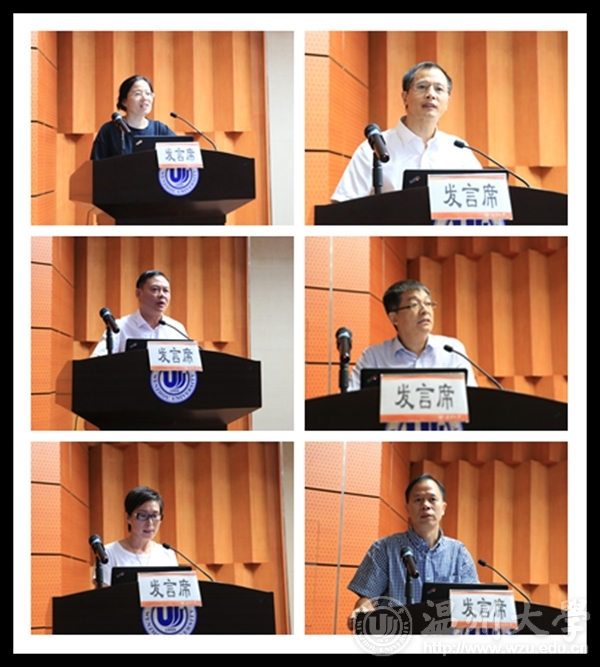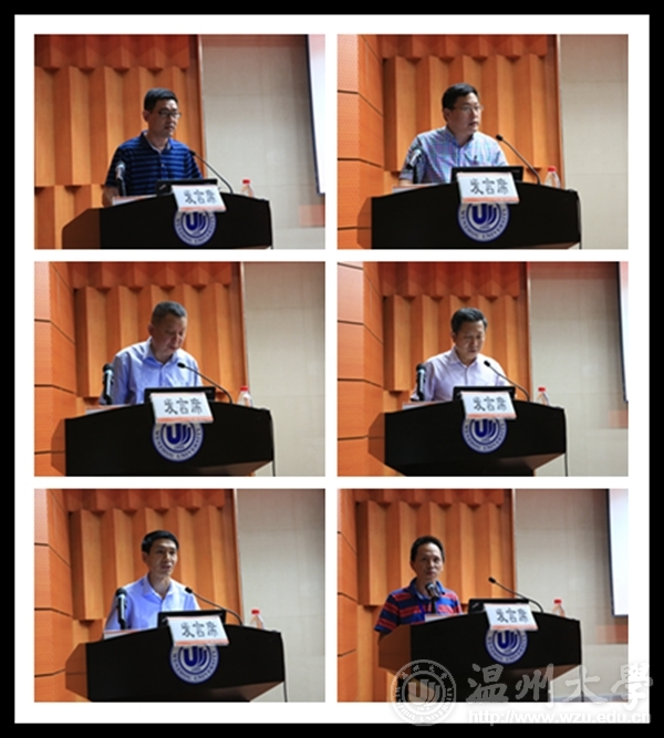 副校长薛伟、蔡曙光、钱强、方益权分别作 “科技成果转化与服务地方”“校园环境整体提升”“国际化”“人才培养”等“十三五”发展规划子规划专题报告。