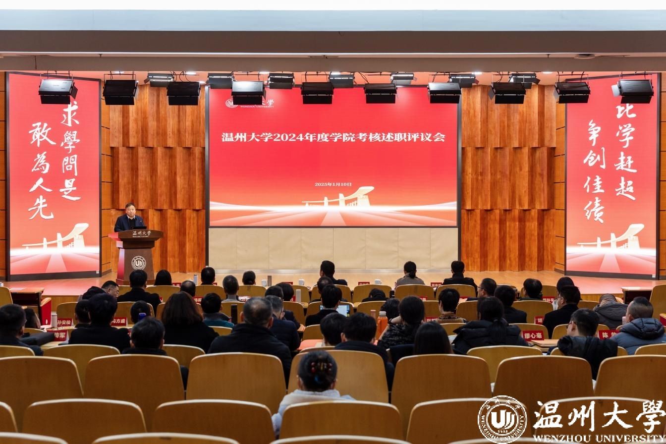 1月10日,学校在南校区岩松堂雁山厅召开2024年度部门、学院考核述职评议会。全体校领导,学院、部门主要负责人参加会议,部分师生代表列席会议。会议由校长赵敏主持。
