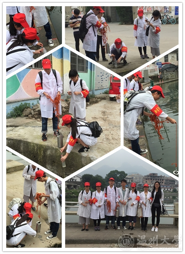 【立足专业,河流探访】 乐清市白石街道因水而生,因水而兴。在白石街道团工委的大力支持下,生环学院13环本团支部携手国家重大水专项农村分散式污水处理与研究项目组成员组成河流探访小分队开展河流探访活动。通过走河、探访的方式,结合专业知识进行取水、检测、记录、拍照。大学生行动引起了当地村民们的关注,大家纷纷过表示很关心与自己息息相关的河流的水质情况。