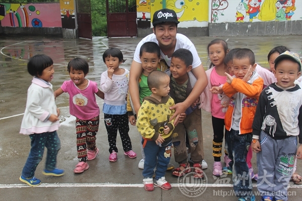 “蚂蚁是一种自身力量微小的动物,却是十分团结的种群。”今年新成立的的支教队伍——温大国际合作学院“蚂蚁行动”暑期社会实践队,在队长孙佳杰的带领下,前往云南省迪庆藏族自治州维西县中路乡春天幼儿园,为这所寂静地躺在迷人高原风景里一隅的西部幼儿园带来真切的关爱。 青藏高原南缘,横断山脉腹地,雪峰峭壁撑起湛蓝天际,白云游荡在湖泊,牛马追逐着水草,彩旗飞扬猎猎作响。50个小时的火车,8个小时的大巴,2个小时的山路,一群热心而又坚定的人——“蚂蚁行动”实践队从东海之滨深入到西部大山深处,去追寻春天般的希望。 长途的跋涉、艰难的环境、水土的不服没有使他们退缩,为带给孩子们一个美好的环境,队员们利用午休的时间为幼儿园空白的墙抹上绚丽的油彩。孙佳杰表示,在实践队出发之前一位城市学院的老师这样嘱咐:“去支教就应该做一些对孩子们具有长远影响的事情。” 家访是实践队员们印象最深刻的时候。低矮的房屋,简单的摆设,辛酸的打扮……实践队员表示:“当我们进入孩子家中的时候,我们的心情是复杂而沉重的,我们与家长详细地了解孩子的成长故事和家庭故事。虽然物质匮乏,但言语间,我们可以感受到他们对孩子强烈的爱。他们渴望孩子们可以获取到更多的知识。这或许是他们自身文化不高,但有着‘知识改变命运’的渴望。” 在西部农村,大多数农人过着日出而作,日落而息的生活。孙佳杰说:“通过走访慰问,我们努力灌输让孩子好好读书,走出大山,走向外面的世界的理念,这或许能稍稍改变孩子们未来的走向。” “付出而不奢求,成就源于付出。”就是这十只小小的“蚂蚁”,在云南大山深处以自己绵薄之力筑起爱之长城,画出爱之彩虹。