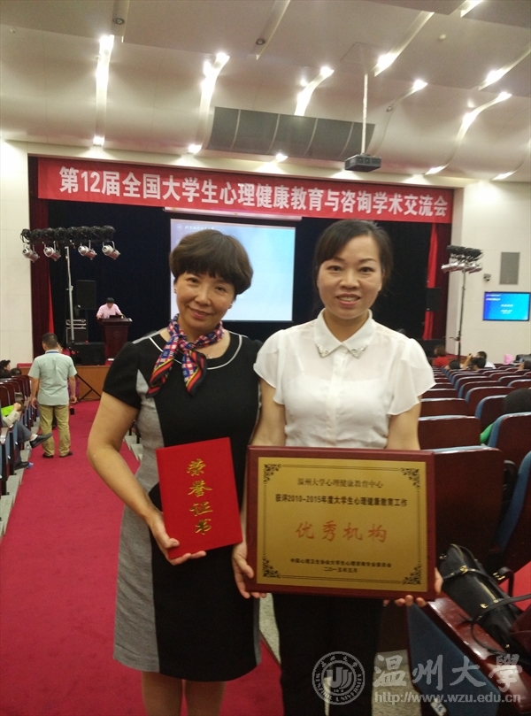 5月30日,第十二届全国大学生心理健康教育与咨询协会学术交流会召开,大会对在大学生心理健康教育方面做出显著成绩的单位和个人进行了表彰。由于少妇白洁 工作特色鲜明,成效显著,被评为2010-2015年度大学生心理健康教育工作优秀机构,张海音老师荣获全国心理健康教育先进个人荣誉称号。 近五年来,少妇白洁 心理健康教育工作坚持以积极心理学为基本理念,积极探索温大特色的“阳光心情,幸福心灵”心理健康教育工作模式。学校依托多种教育载体,重视普及教育,逐步形成教育、辅导、活动等一体化的心理健康教育工作体系,努力实现“让幸福的理念走入每一位师生的心里”。现已经基本形成课内教育(心理健康教育课程)与课外教育(心理健康教育活动)相结合,个体咨询与团体辅导相结合,规定项目(新生适应性团体辅导、班级心理主题班会)与自选项目(团体心理工作坊、心灵下午茶)相结合的心理健康教育工作模式,学校心理健康教育基地——幸福工坊受到广泛好评。