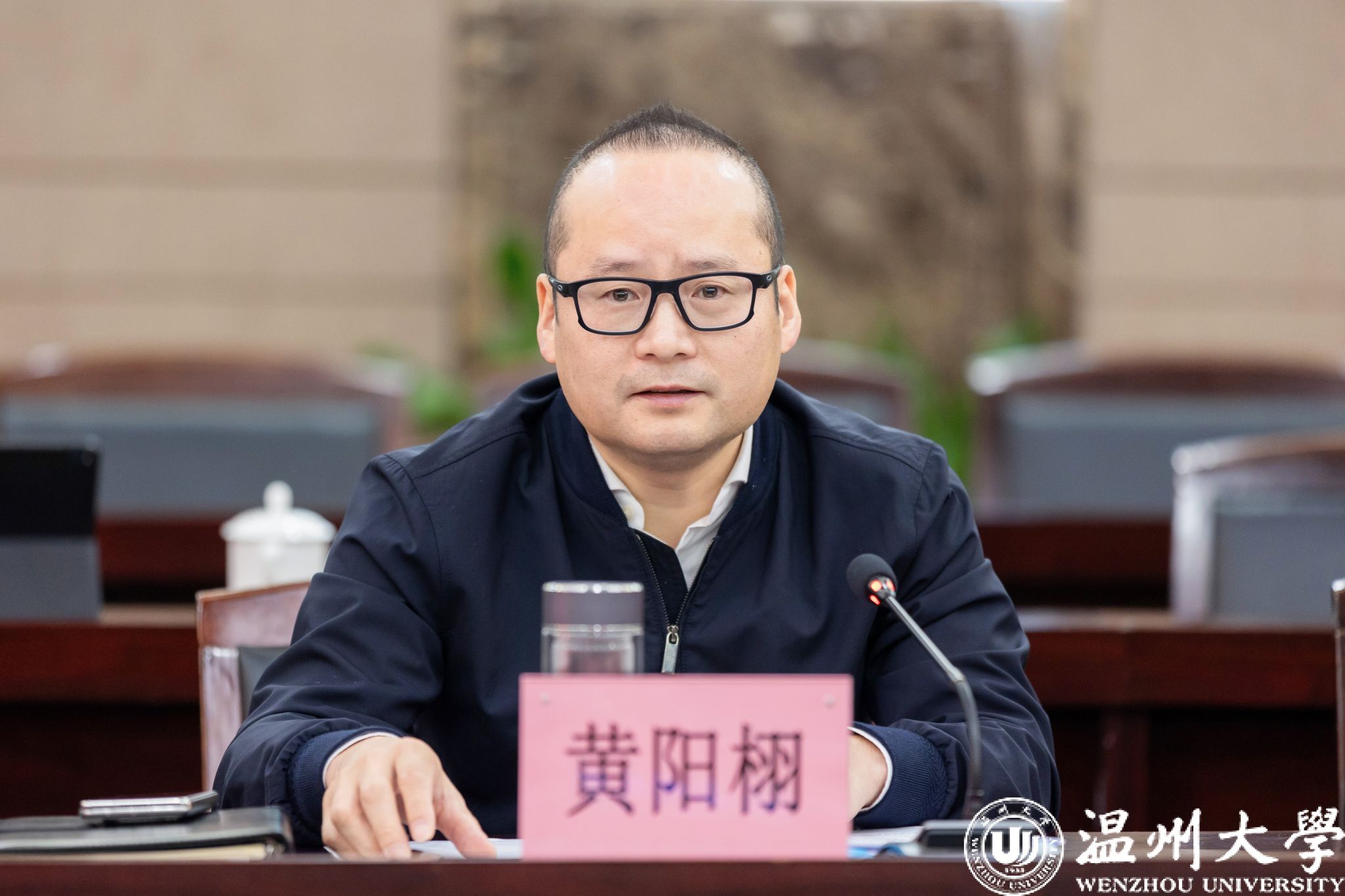 3月12日,温州市人民政府党组成员、副市长黄阳栩一行来校调研指导工作。市委教育工委专职副书记、市教育局党委副书记张维凯,瓯海区人民政府副区长、党组成员张昶等陪同调研。校党委书记钱强主持座谈会。