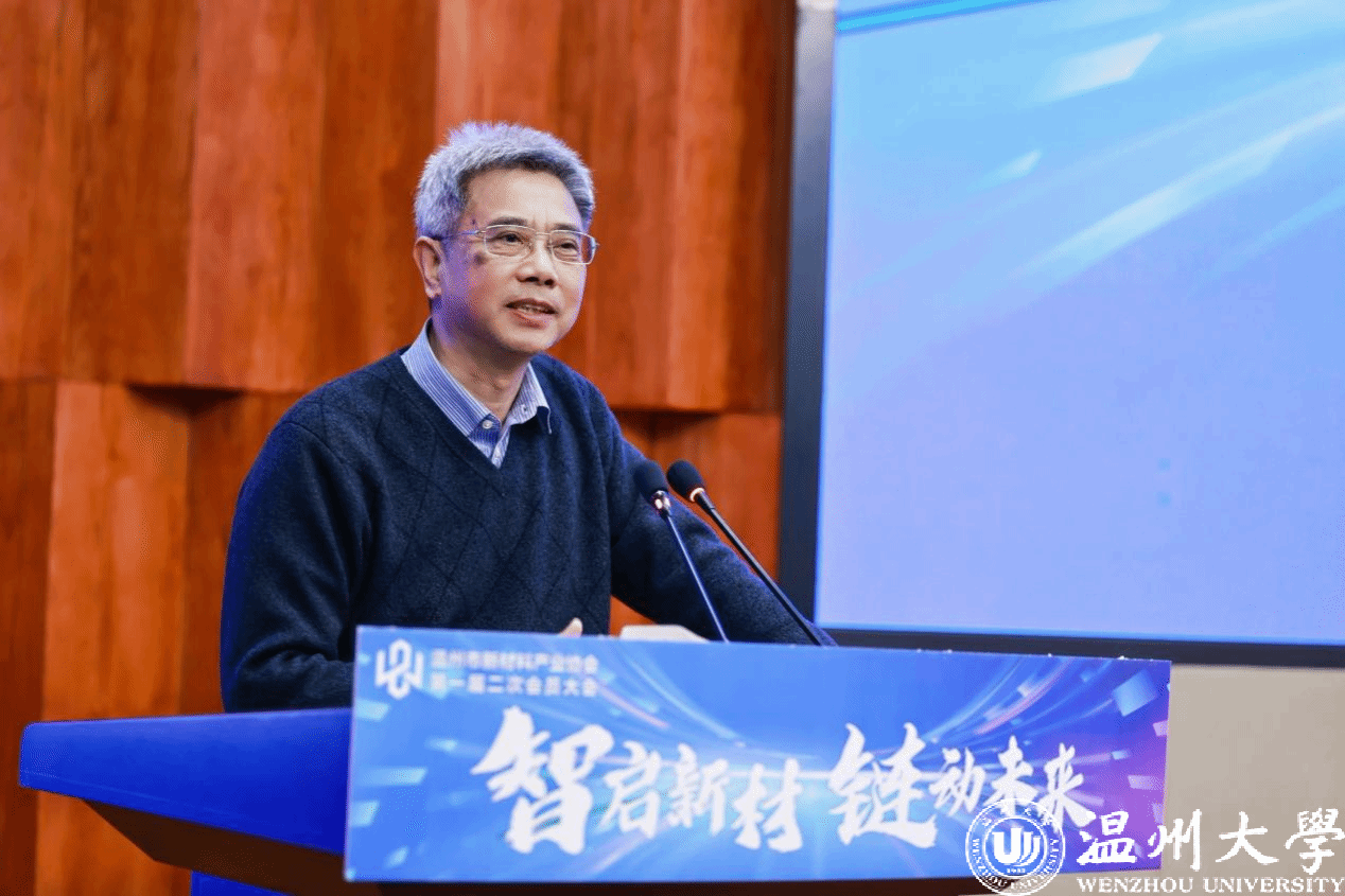 杨辉致辞,他指出,敢为天下先的温州,正用民营经济的“四千精神”书写着新材料产业创新的崭新篇章。