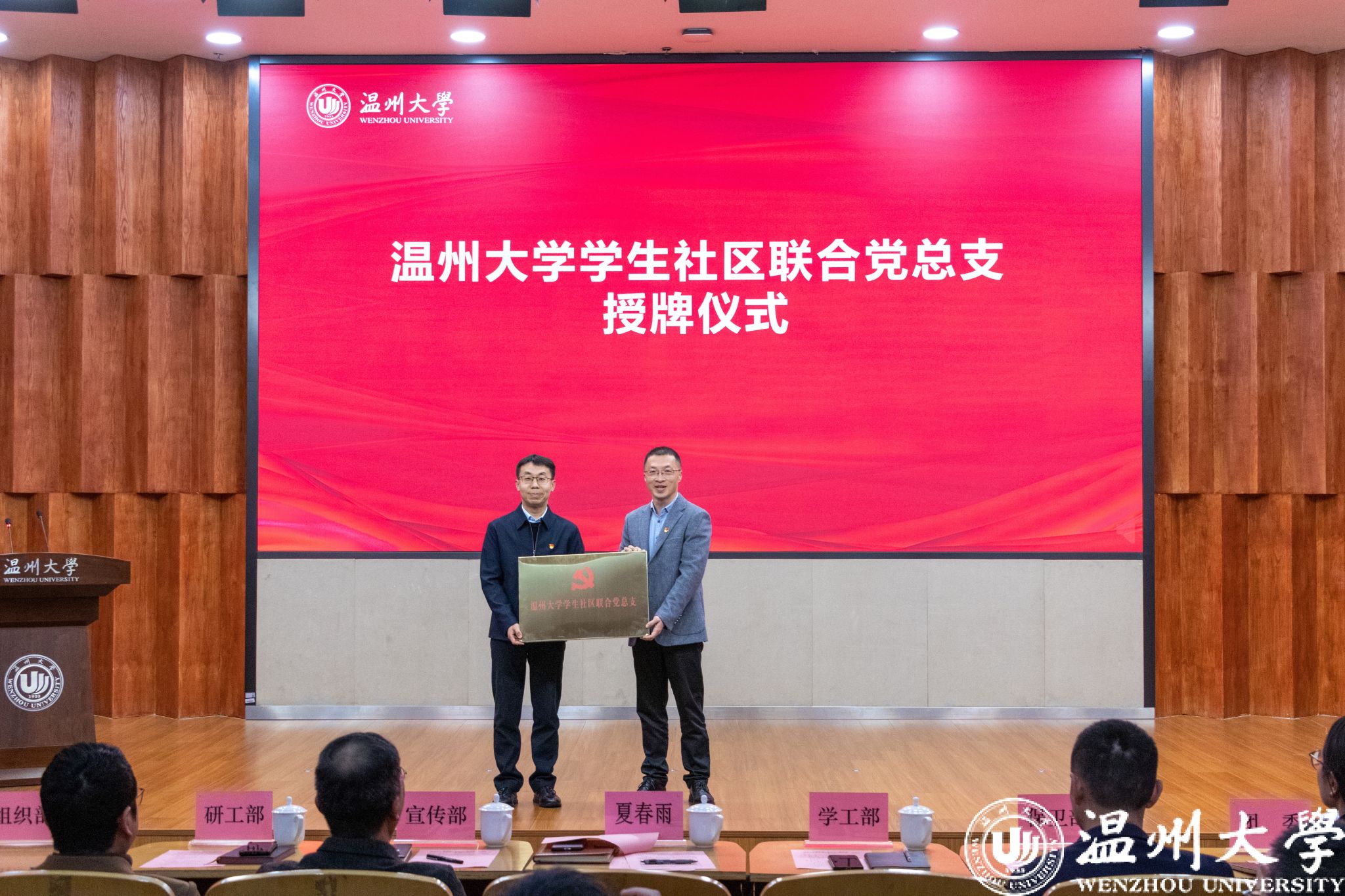 会上,宣读了《关于调整学生社区联合党总支组成人员及下设功能型党支部的通知》,强调党的组织在学区要实现有形、有效覆盖。夏春雨为社区联合党总支授牌。学生社区联合党总支书记接牌并介绍了《学区先锋党支部“领航行动”实施方案》,布置开展领航思想、领航正气、领航成长、领航服务、领航担当五大行动。