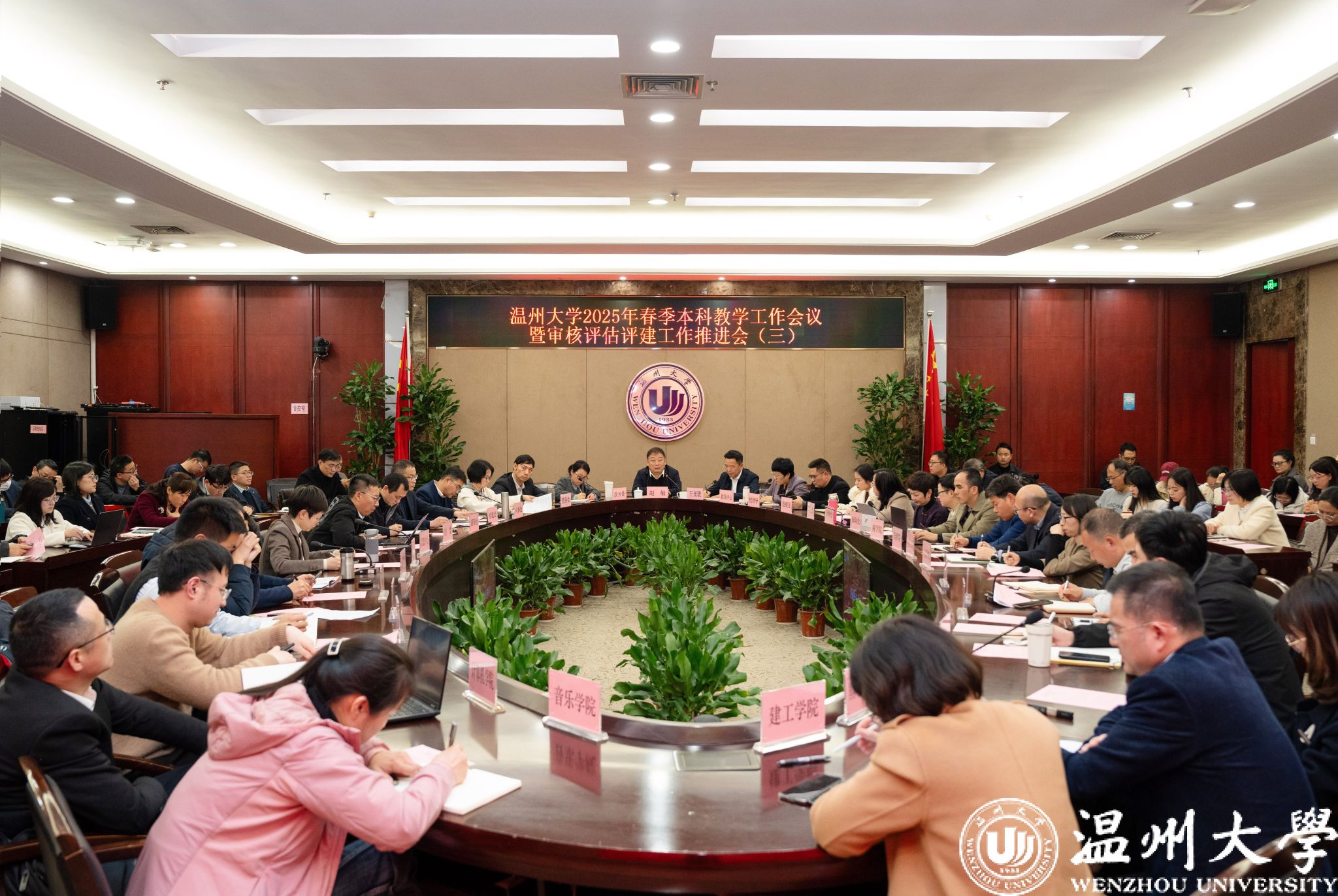 赵敏作总结讲话。他指出,今年是学校的审核评估年,全体师生应以“时不我待”的担当,将任务转化为行动,在迎评攻坚中展现作为,抓住审核评估重要契机,找差距、补短板、强优势、创特色,为学校本科教育把脉定向。他强调,在迎评过程中,一是要坚持对标对表,全面开展本科教育教学审核评估的评建工作。要聚焦任务重点,对标对表本科教育教学评估定量指标,正视差距,逐条逐项整改和加强,高质量完成本科教学评估工作。二是要加强协同配合,全方位推进审核评估的筹备工作。各职能部门与二级学院要做到责任到岗、任务到人,确保评估工作无盲区。同时,要形成协同共进的工作格局,定期召开推进会,集中研讨重难点工作解决方案。三是要营造教学氛围,共同提升本科教育教学质量。教风与学风是本科教育的生命线,更是审核评估的核心观测点。学校要以师德师风为引领,坚持学风建设,激发师生爱校情怀,推动形成“教师潜心育人、学生勤学笃行”的良好氛围。