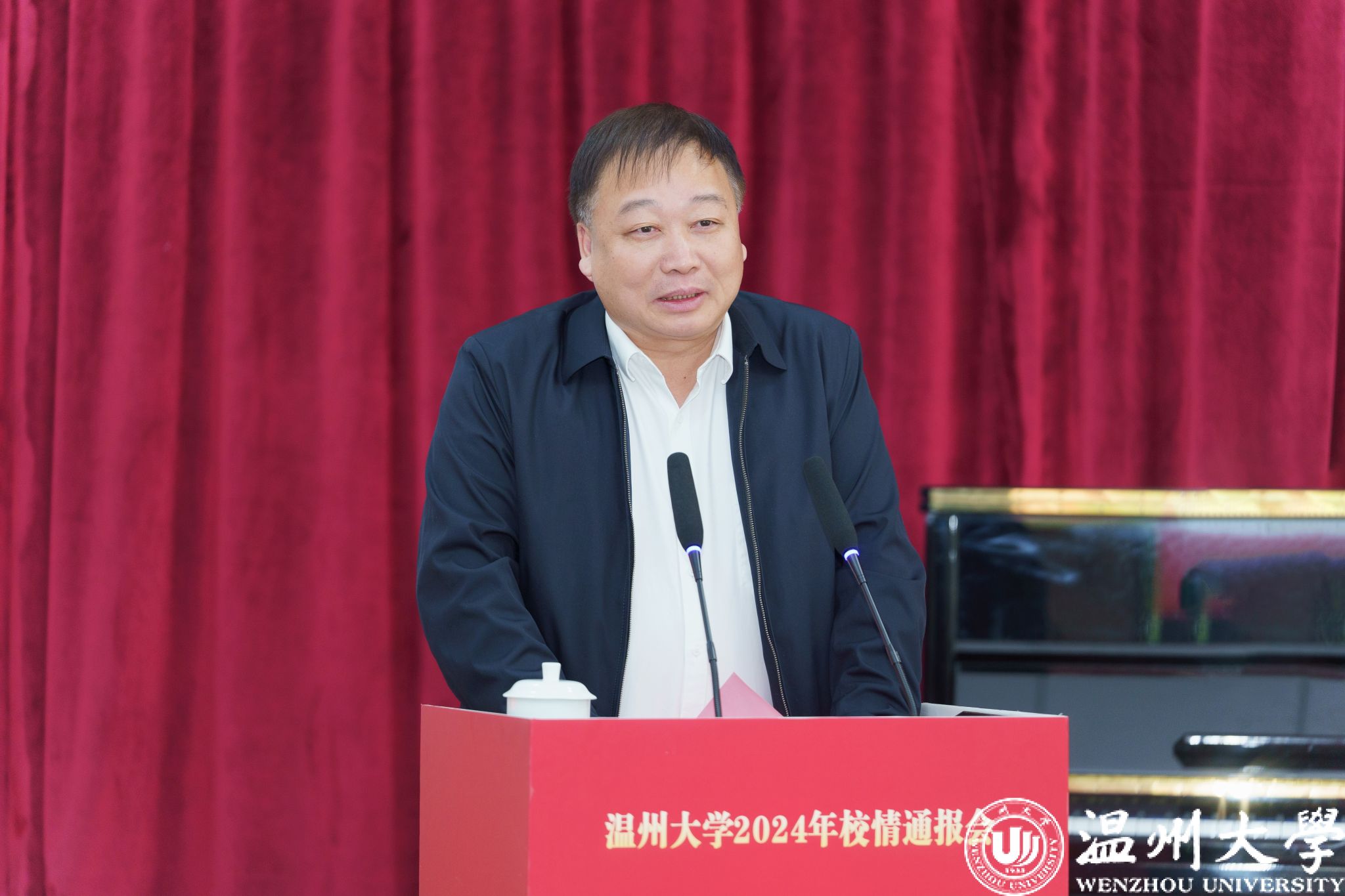 赵敏作校情通报。他指出,2024年全体温大人牢记殷殷嘱托,聚焦“五个着力”,全面推进“锚定5133,奋进2024”工作主题主线,各项事业发展取得丰硕成果。围绕党建引领更加坚强有力、学科建设动力更加强劲、人才培养成效更加凸显、师资队伍结构更加优化、科研创新成果更加丰硕、服务地方举措更加高效、开放办学推进更加深入、校园文化建设更加完善、服务师生需求更加彰显等九个“更加”通报了过去一年学校各项工作情况。