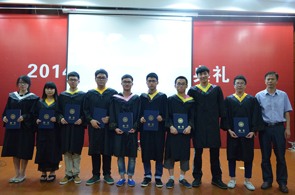 图为物电学院领导为2014届校友联络员颁发聘书并合影留念。