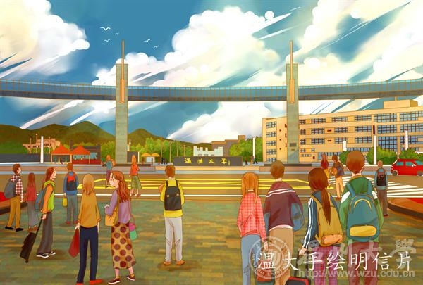 近日,一组温大校园风景手绘明信片勾起了每一个温大人对美丽校园的无限爱恋。由温大学子倾注了情感和心血的画笔记录下的那些美好时光,抒写着学子的青春与梦想。每一张明信片还原的风景色彩干净明丽、画面生动流畅。寝室、教学楼、食堂、图书馆、大学生活动中心、学子广场……青葱岁月里经历的每个场景历历在目,令人念念不忘。 ——编 者
