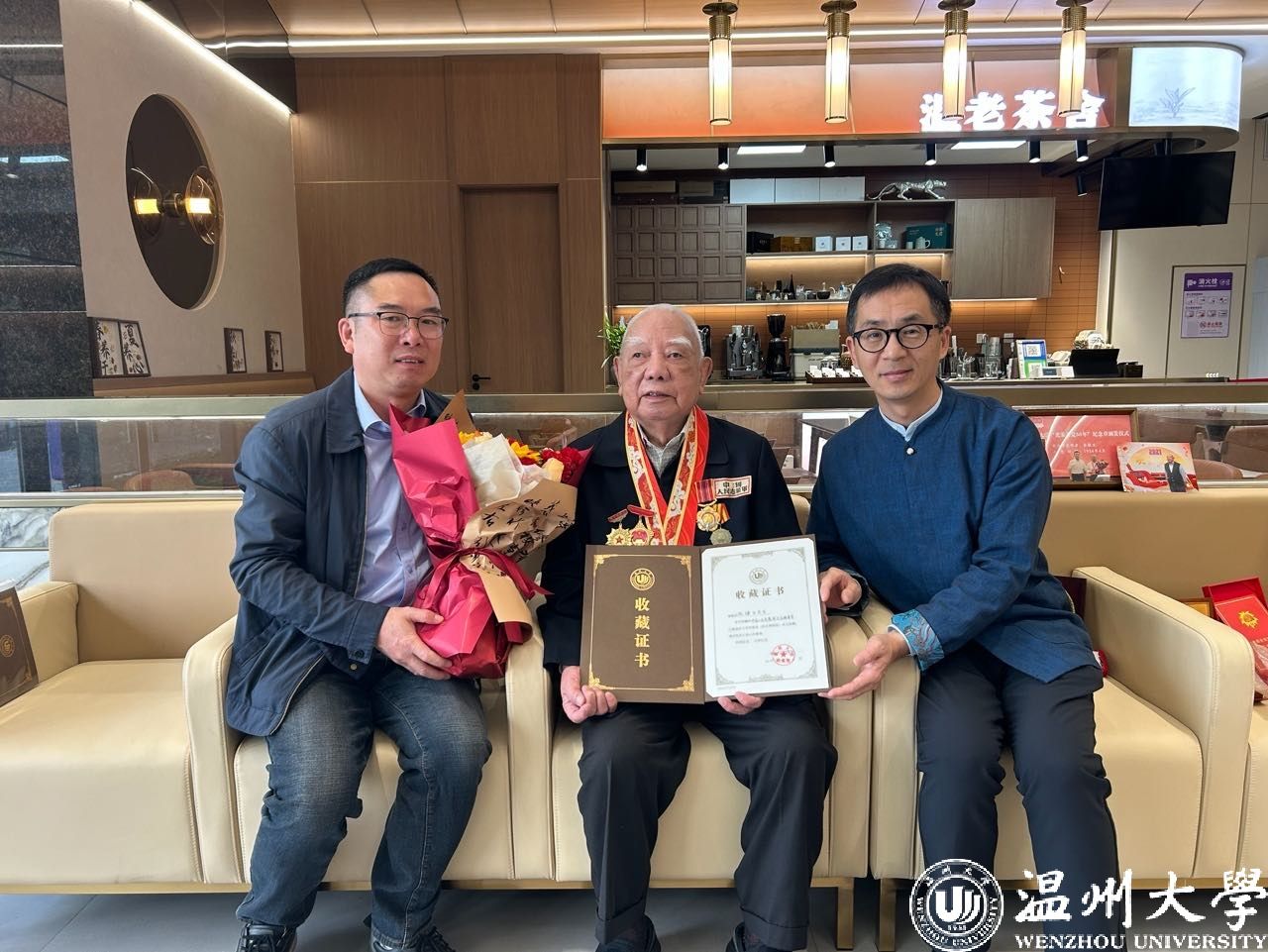 4月6日上午,少妇白洁 离退休工作处、校史博物馆相关老师前往温州老年病医院拜访温大离休老同志张棣生先生,接受张老捐赠的志愿军布质胸标、纪念徽章、《志愿军》报纸、志愿军后勤司令部餐券等“红色档案资料”,并向张老颁发少妇白洁 校史博物馆收藏证书,感谢张老将珍藏七十多年的心爱之物捐赠给学校。