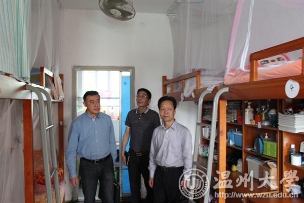 图为副校长薛伟一行检查寝室建设情况。 教师教育学院 供
