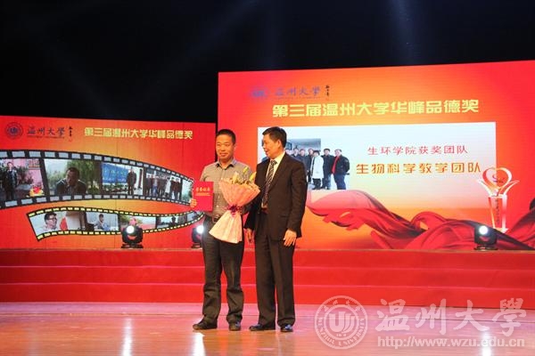 颁奖辞:这是一个以教书为乐趣,以育人为天职的群体;这是一个把细微关怀当作一种习惯,把点滴关爱汇成一股潮流的群体;这是一个代表了最甘于平淡、最乐于奉献、最以生为本的温大教师群体。