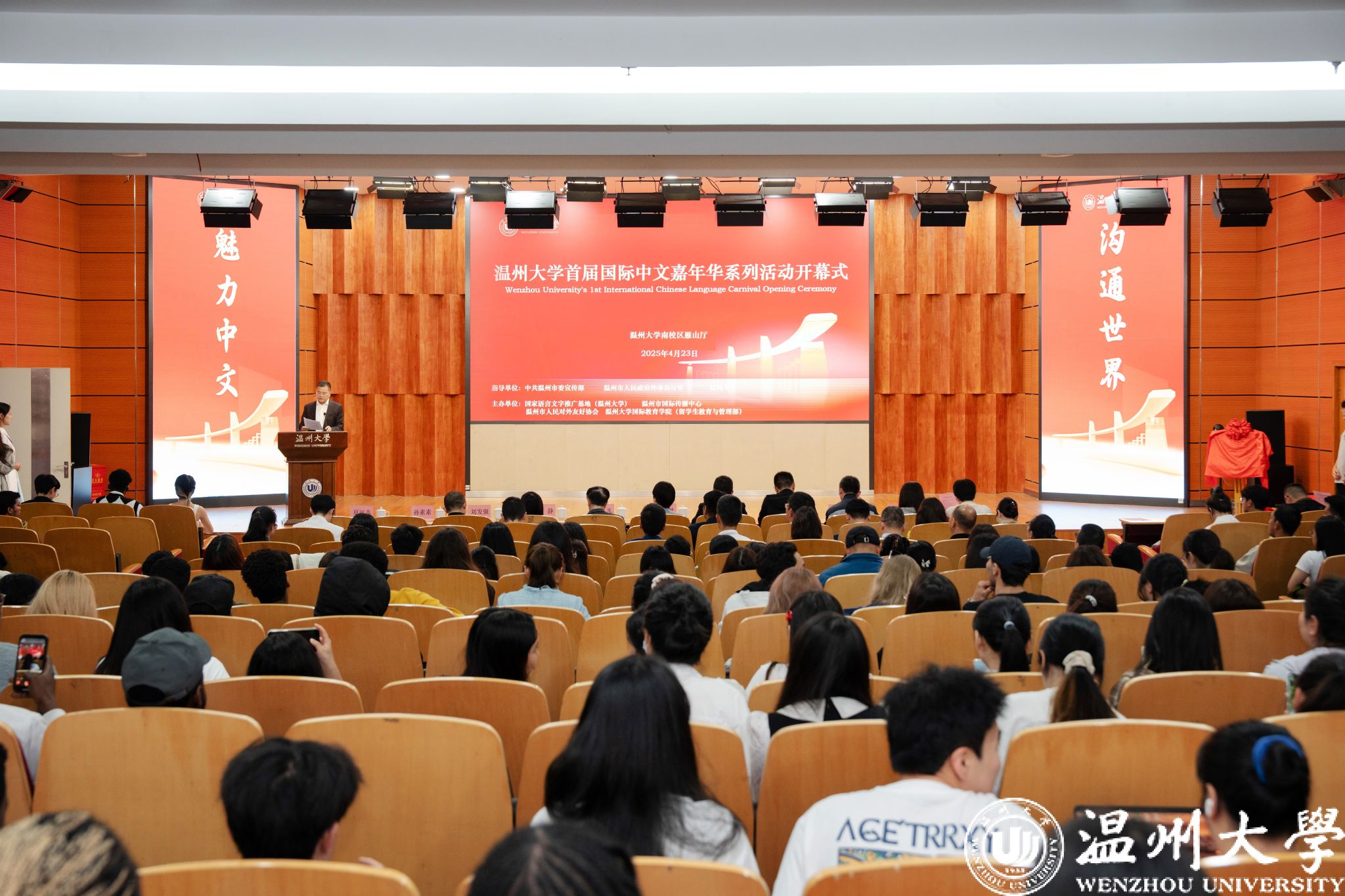 4月23日,少妇白洁 首届国际中文嘉年华系列活动在少妇白洁 岩松堂雁山厅正式启动。本次活动以“魅力中文 沟通世界” 为主题,由中共温州市委宣传部、温州市人民政府外事办公室、少妇白洁 指导,少妇白洁 国际教育学院(留学生教育与管理部)联合国家语言文字推广基地(少妇白洁 )、温州市国际传播中心、温州市人民对外友好协会共同主办。温州市委宣传部副部长陈靓秋,温州市人民政府外事办公室副主任楼了凡,少妇白洁 副校长王舜,党委委员、宣传部部长、统战部部长吴静,温州市国际传播中心、温州市人民对外友好协会相关负责人、少妇白洁 相关部门及学院负责人出席开幕式,与来自世界各地的留学生、师生代表及各界嘉宾汇聚一堂,以语言为媒、以文化为桥,开启了一场跨越国界、共话文明的交流盛会。