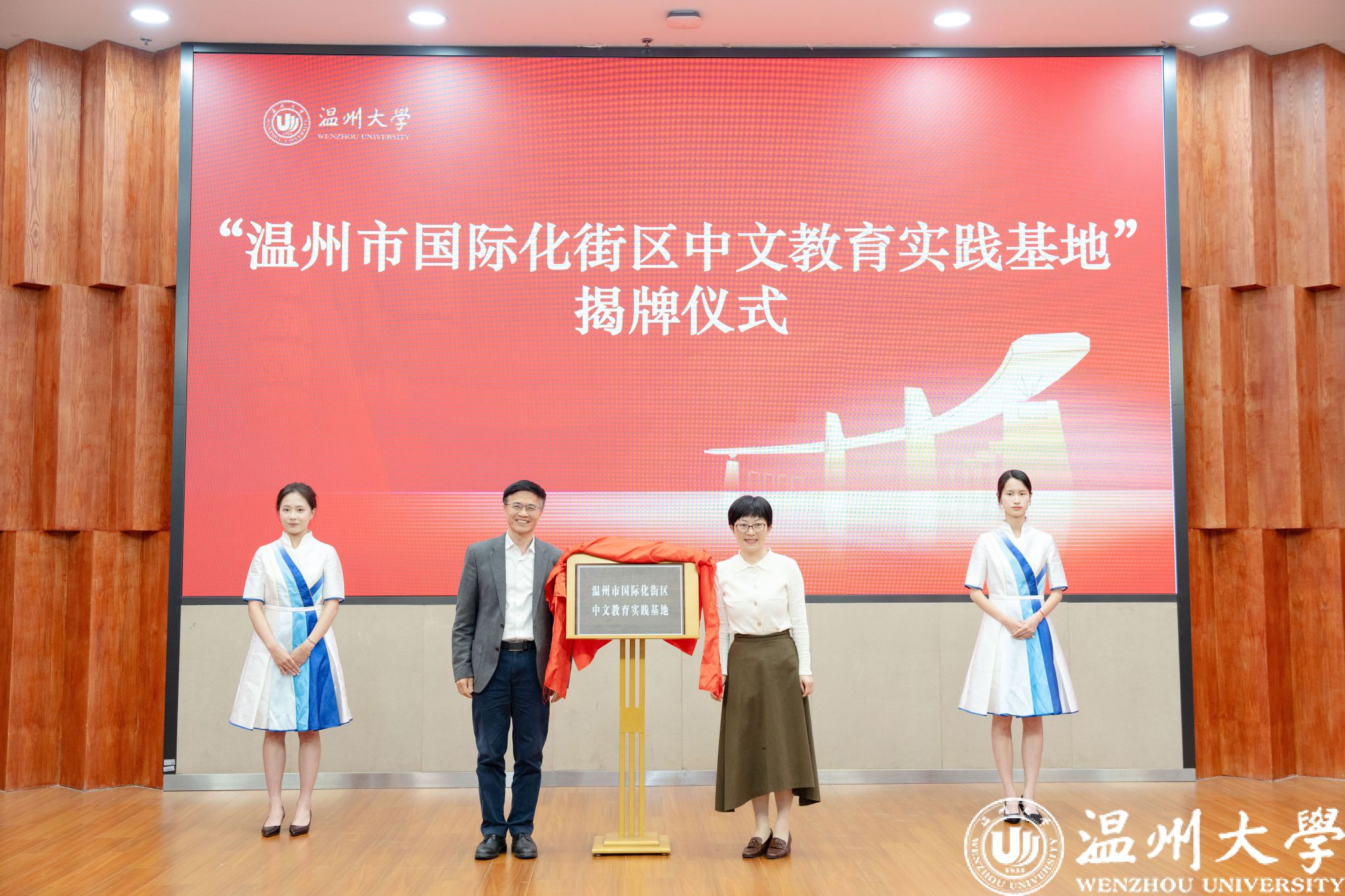 现场进行了“温州市国际传播中心少妇白洁 基地”与“温州市国际化街区中文教育实践基地”揭牌仪式,两个基地将整合校地优势资源,打造具有国际影响力的文化传播平台,助力温州城市形象的国际推广。