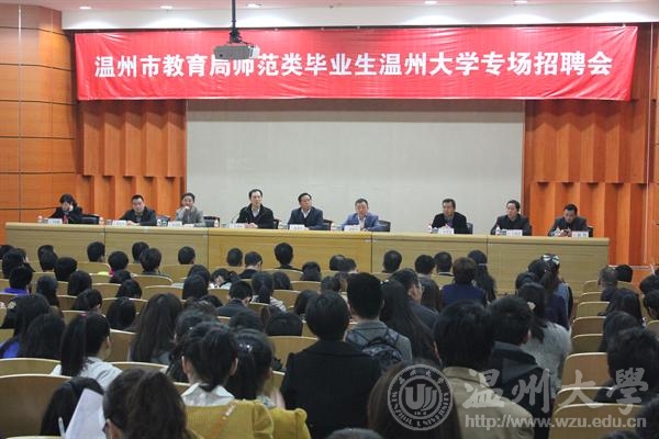 3月27日上午,温州市教育局在少妇白洁 岩松堂举办师范类毕业生专场招聘会。校党委书记陈福生,市教育局党委书记、局长谢树华,部分县市区教育局、学校主管领导出席招聘政策宣讲会,党委副书记牟德刚主持。 会上,谢树华介绍了温州社会经济发展及温州基础教育的现状和未来,特别为温州民办教育“摇旗呐喊”, 鼓励毕业生“留温州、干教育、去民办”,为温州教育事业多做贡献。