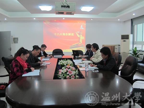 11月21日,商学院邀请温州市社科联副主席卢达作党的十八大精神辅导报告。卢达从改革的重要性、民主政治建设、文化建设、生态文明建设等方面,结合温州经济社会现实情况及温州市委市政府的有关决策和规划作深入解读。