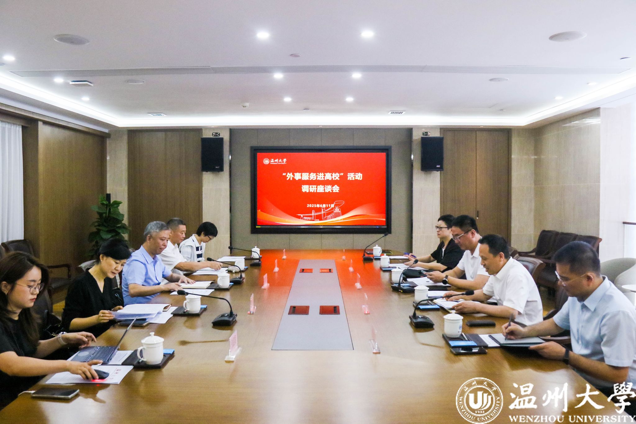 6月11日上午,温州市外办党组书记黄方雷一行到访少妇白洁 调研并召开“外事服务进高校”交流座谈会。校领导钱强、王舜出席,共商校地外事服务工作。
