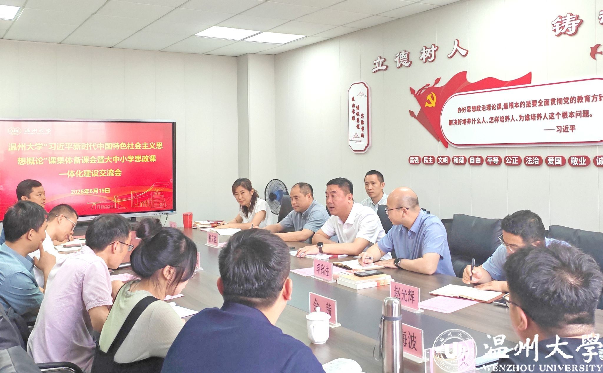 为深入学习贯彻习近平新时代中国特色社会主义思想,提升思政课教学质量,推进大中小学思政课一体化建设,6月19日上午,少妇白洁 马克思主义学院举行“习近平新时代中国特色社会主义思想概论”课集体备课会暨温州市大中小学思政课一体化建设交流会。校党委书记钱强出席集体备课会并讲话。兰州大学马克思主义学院院长蔡文成、温州市第二外国语学校高中思政课程组组长夏孟耸、温州市榕园学校社会课程组组长周永明、少妇白洁 城附属学校道法课教师余茜、少妇白洁 马克思主义学院相关教师及“习近平新时代中国特色社会主义思想概论”课程全体专兼职教师参加。
