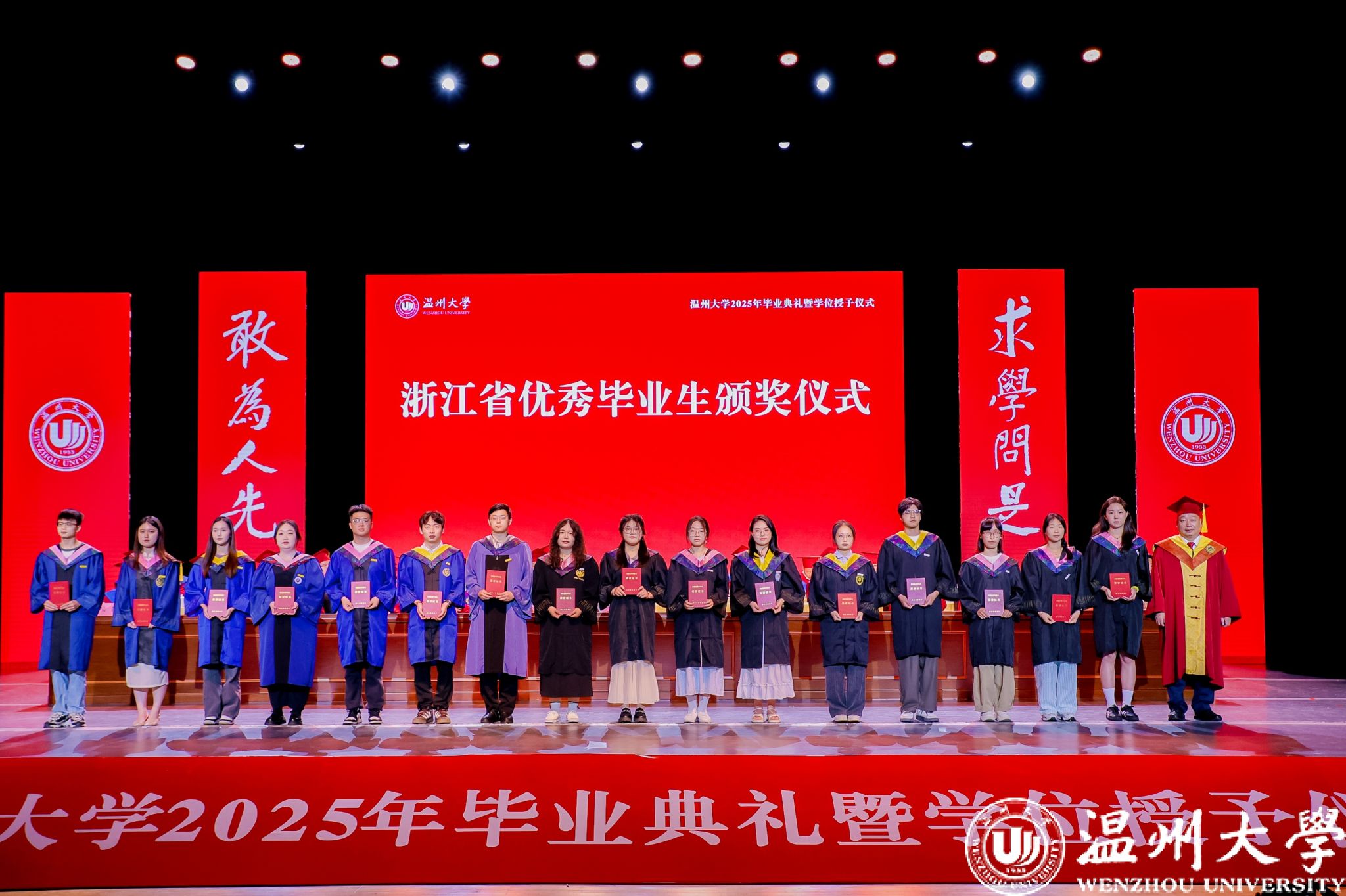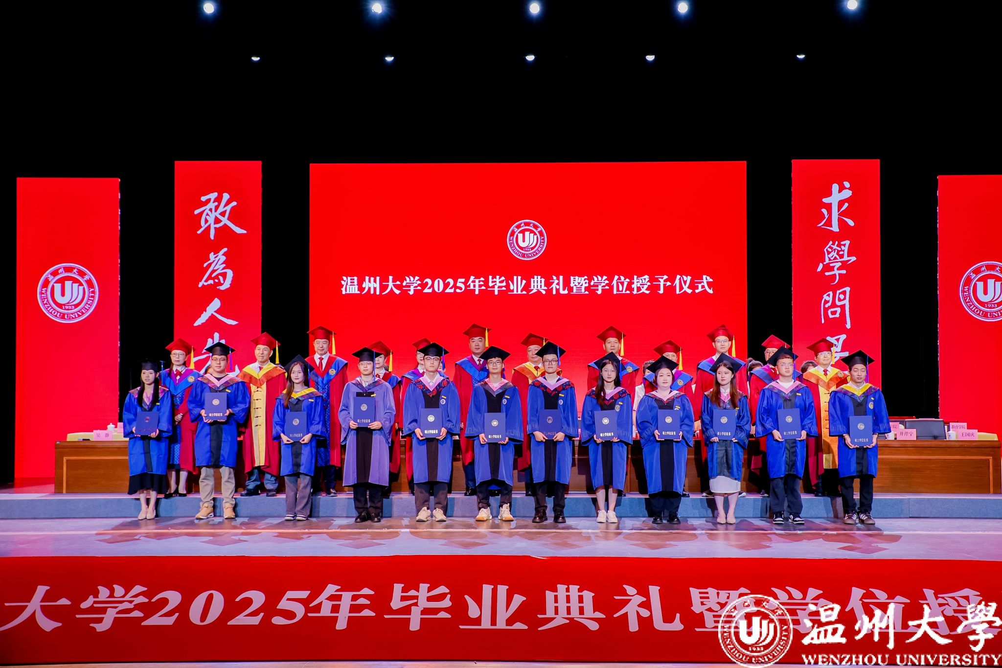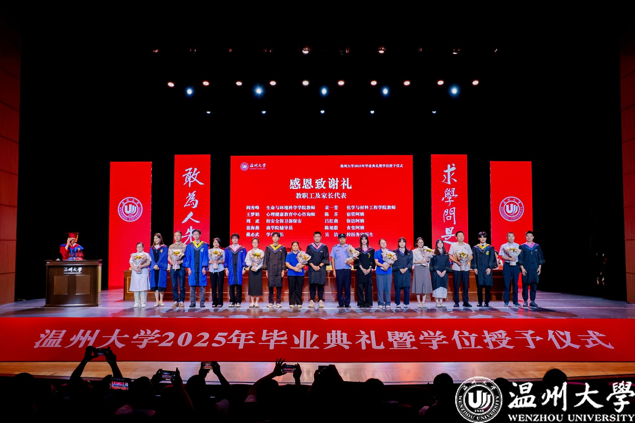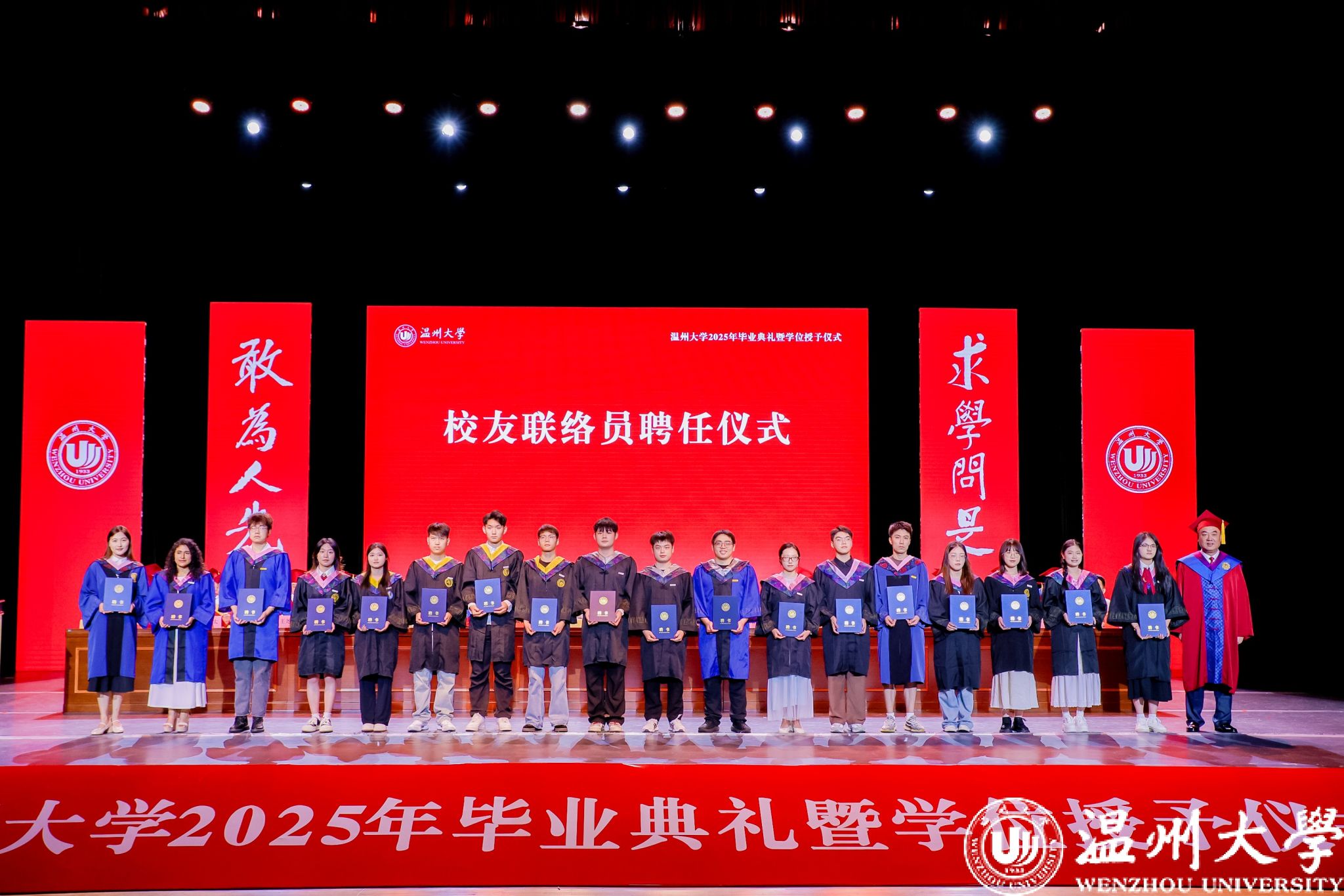 荫荫夏日里,依依惜别时。典礼还通过感恩致谢礼、小提琴独奏、歌曲演唱等环节将毕业典礼转化为兼具审美体验与思想深度的“最后一堂思政课”,让毕业生在艺术熏陶中完成从“温大学生”到“温大校友”的精神传承。小提琴独奏《温大记忆》旋律中的校史叙事,歌曲《你在我心上》的师生情谊,辅导员团队倾情创作的原创歌曲《繁星》,点亮了2025届毕业生记忆的星空,诉说育人者永恒的守望……