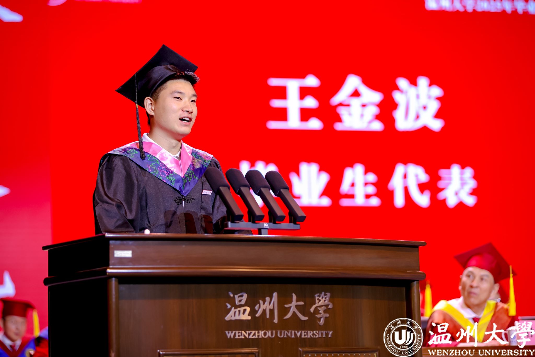 本科生代表、体育与健康学院的王金波同学讲述了从戍边军营到温大校园的成长蜕变,深情回顾了成长路上温大教会的“在平凡的日子里感受不平凡”与“在挫折面前保持热爱”。