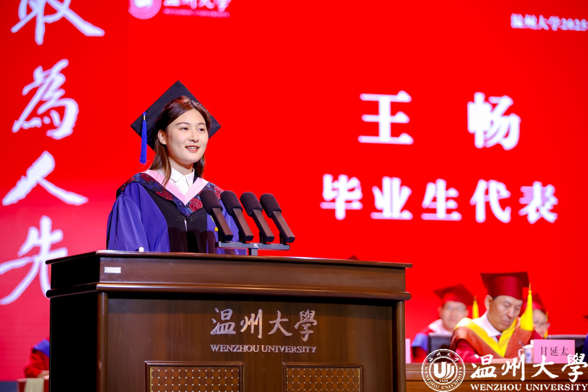 研究生代表、创新创业学院的王畅同学以自身跨学科成长经历与国际实践故事,生动诠释了温大学子“求学问是、敢为人先”的精神底色。