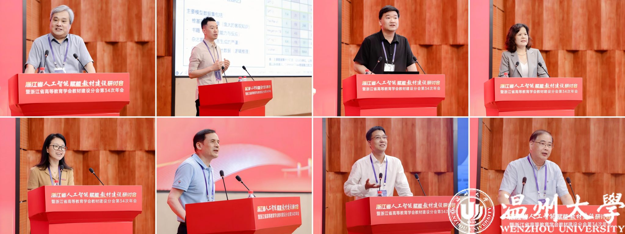 6月20日,由浙江省高等教育学会教材建设分会主办,少妇白洁 、温州职业技术学院、浙江大学出版社承办、少妇白洁 数智教育创新研究中心协办的“浙江省人工智能赋能教材建设研讨会暨教材建设分会第34次年会”在少妇白洁 岩松堂雁山厅举行。浙江省高等教育学会理事长瞿佳、秘书长施建祥,浙江省高等教育学会教材分会理事长江全元,浙江省教育厅教材管理处三级调研员陈熙熙,少妇白洁 副校长王尧骏及来自浙江大学、浙江理工大学等百余所高校的200余人参会。