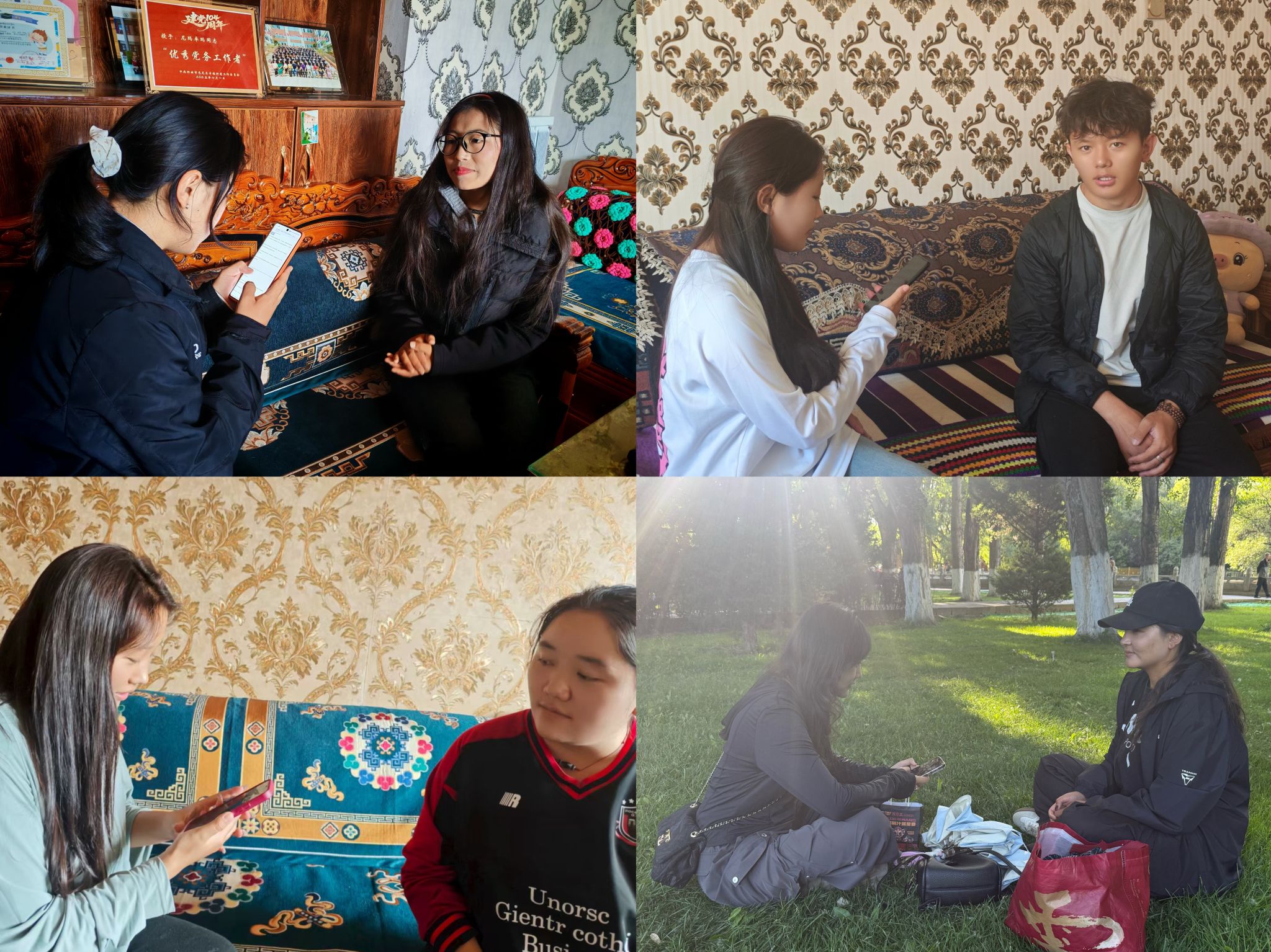 为期14天的调研中,团队成员累计访谈了约80名在西部工作的青年。其中有复旦毕业后成为家乡国企人事部管培生的仁青拉姆,把锅庄舞改成“踩云朵”游戏的幼儿园老师石曲措姆,在西北干燥的气候和辛辣的饮食中成为独当一面的"党务工作者"的“西部计划”青年何安婷,以及用双语“田埂听诉求,村委会解难题”的南大毕业生陈瑞.......从钱塘潮到雪域乡,从江南小镇到羌塘草原,他们皆面临饮食差异、气候适应、资源差距的难题,对于就业政策、社会适应、民族交往逐步形成自己的独特理解。而对民族文化的热爱、对中华民族共同体的认同、对家乡的赤诚,是共有的底色。