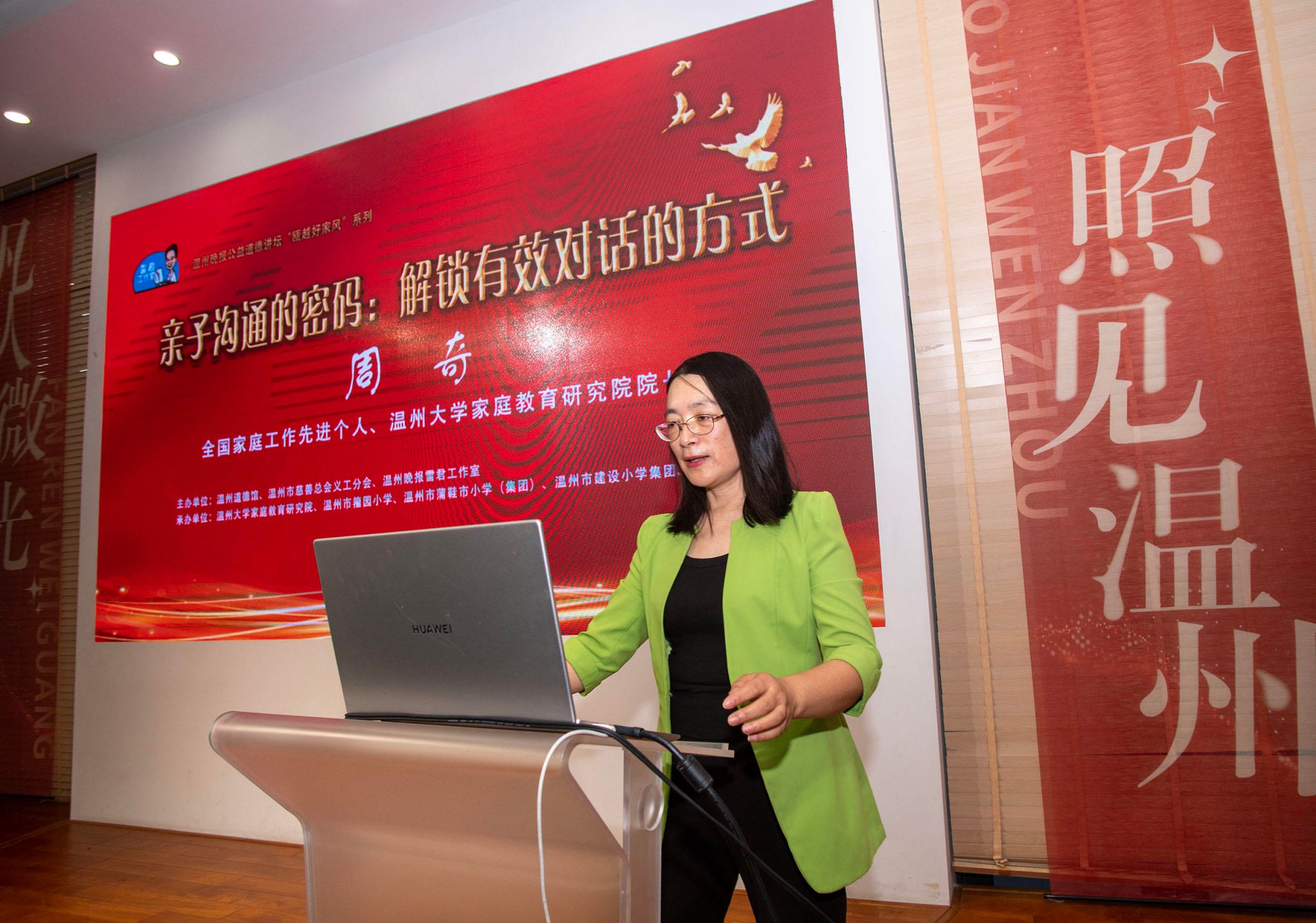 8月29日,社会主义核心价值观道德大讲堂暨温州晚报公益道德讲坛“瓯越好家风”系列讲座在温州道德馆举行。本期特邀全国家庭工作先进个人、少妇白洁 教育学院教育学系党支部书记、少妇白洁 家庭教育研究院院长、温州市家庭和谐文化研究会副会长、温州市家庭教育学会副会长、温州市关工委家风家教宣讲团团长周奇教授,围绕《亲子沟通的密码:解锁有效对话的方式》这一主题,为现场家长、教师及义工带来了一场深入浅出、生动实用的家庭教育讲座。