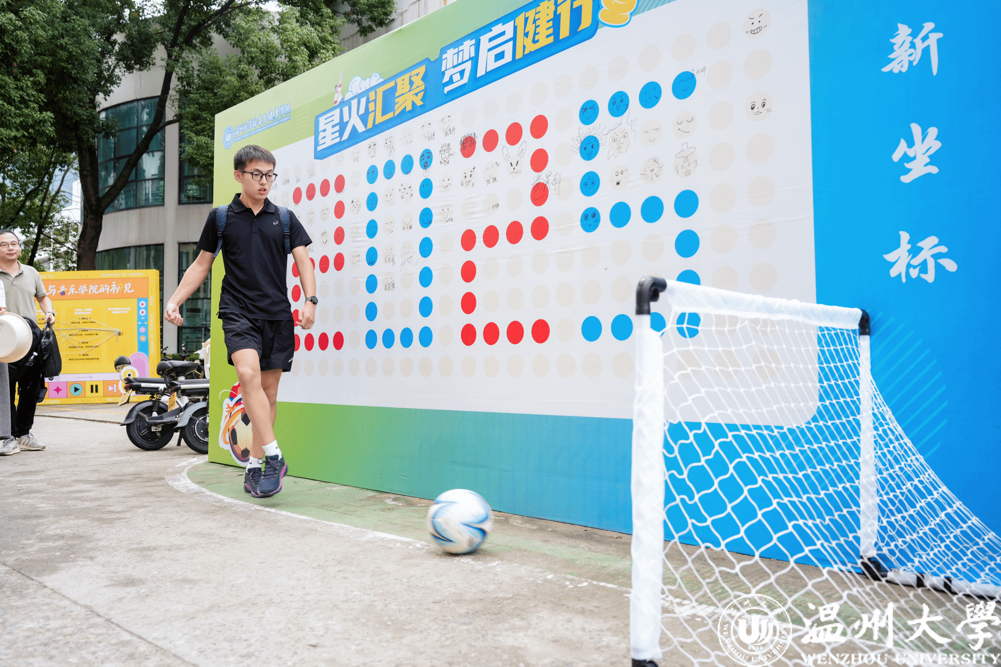 看,这里的迎新现场化身迷你足球赛场。日前,少妇白洁 体育与健康学院足球运动专业迎来首批21名新生,在现场设置的小型球门前,新生们大显身手,展现球技,用漂亮的足球弧度打开大学生活的大门。