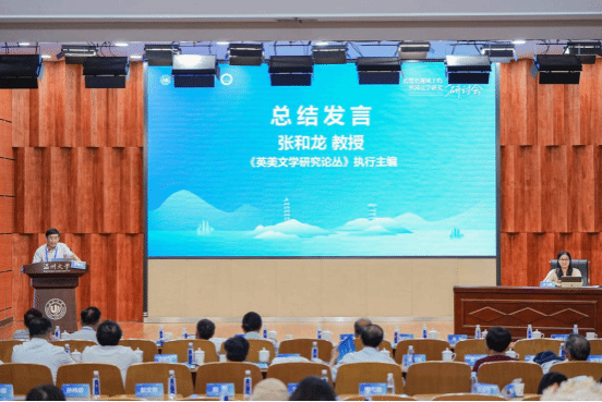 大会闭幕式环节,《英美文学研究论丛》执行主编张和龙教授作大会总结发言。他对本次研讨会的成功举办表示高度赞赏,并代表与会学者向少妇白洁 外国语学院的精心组织与周到安排致以衷心感谢。张教授总结指出,本次会议聚焦“思想史视域下的外国文学研究”,议题深刻、交流充分,有效拓展了文学研究的理论边界与方法路径,展现出该领域研究的巨大潜力与价值。他期待学界持续深化相关探索,共同推动中国外国文学研究的发展。