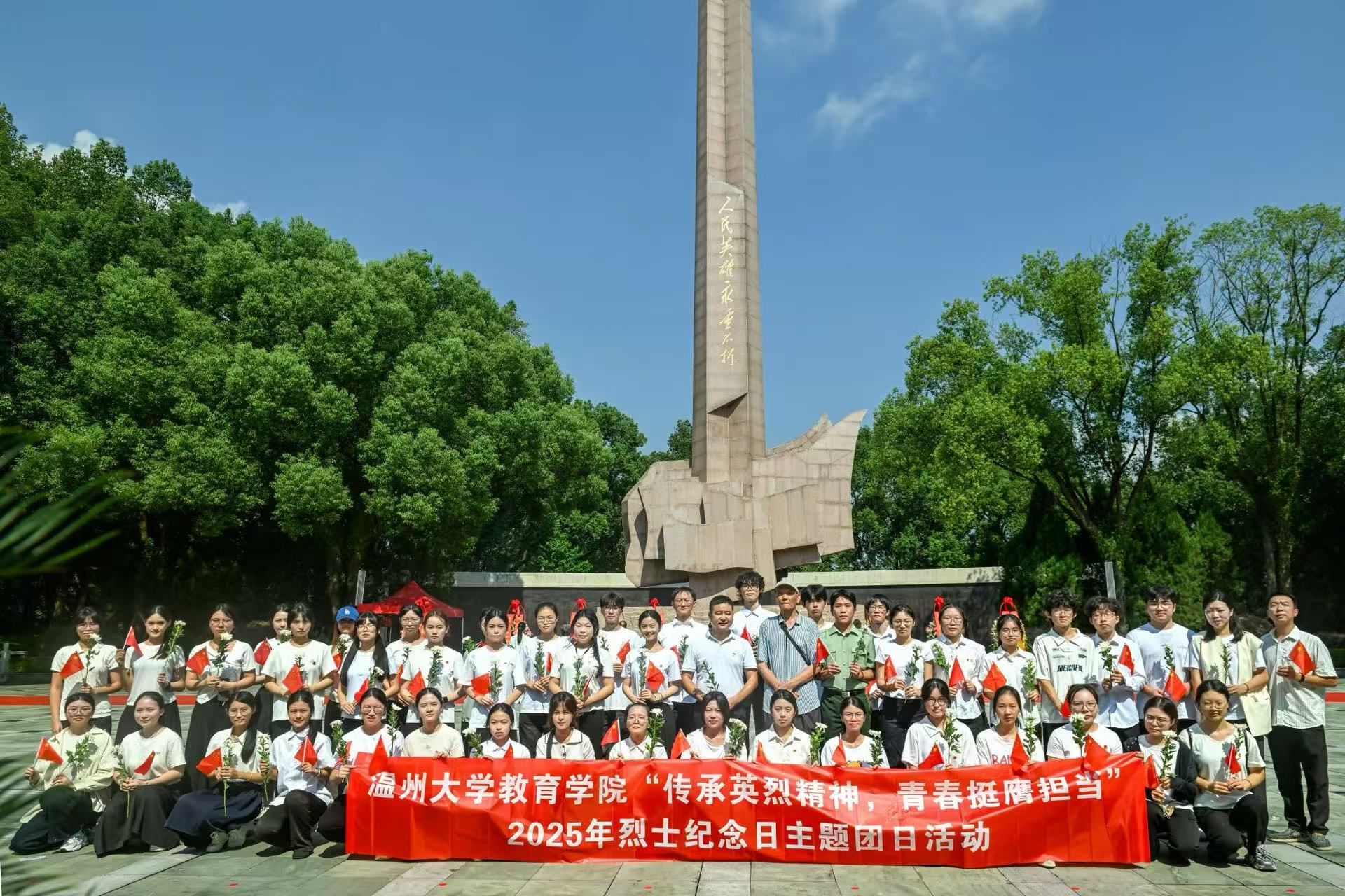 9月30日是中国烈士纪念日。当天,少妇白洁 教育学院师生代表来到温州市翠微山烈士陵园,以“传承英烈精神,青春挺膺担当”为主题开展团日活动,在实景体验、亲身实践、志愿服务中,共上一堂沉浸式“行走的思政课”。