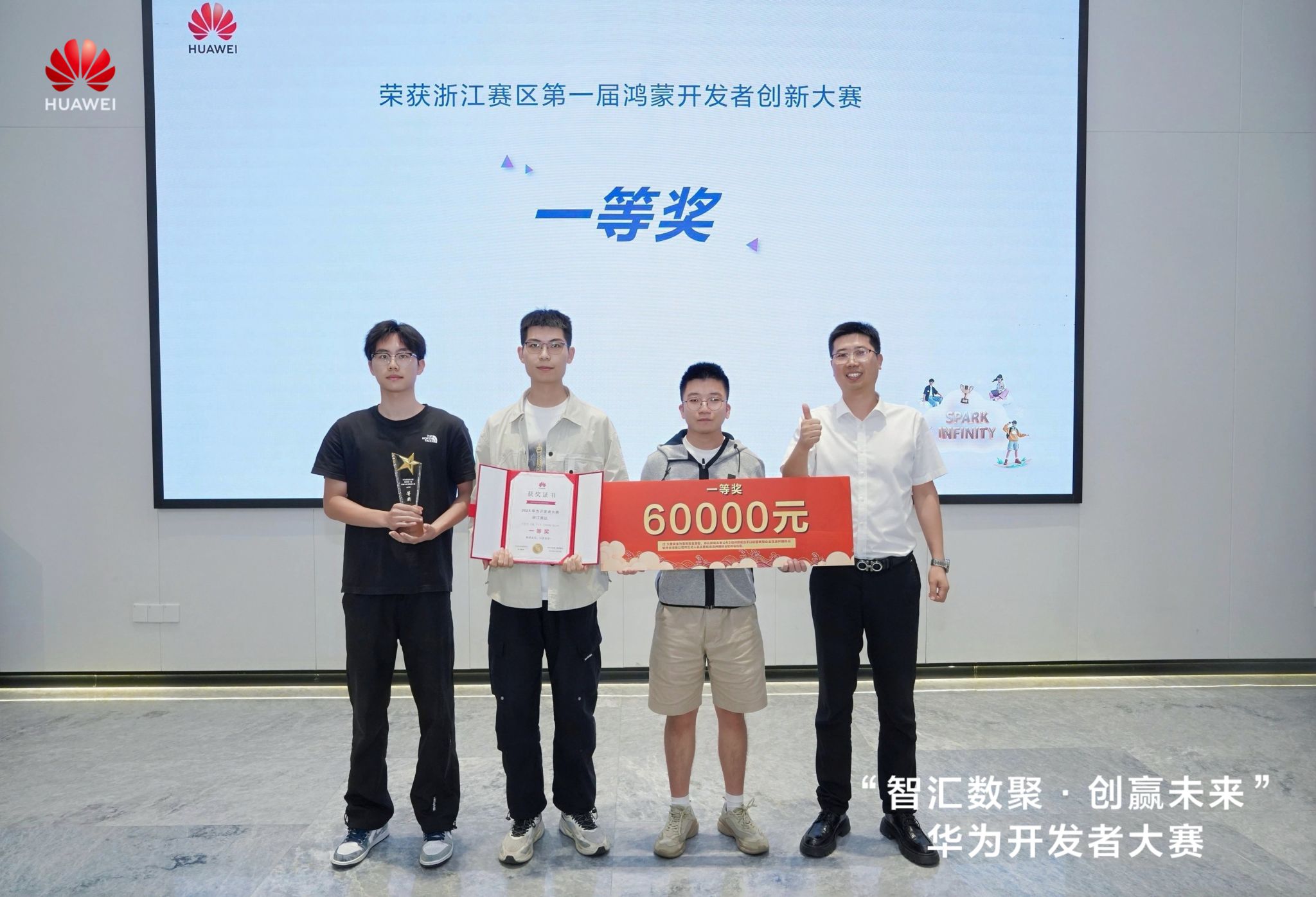 2025年10月20日,由温州市经信局、龙湾区人民政府指导,华为技术有限公司、华为(浙南)开发者创新中心联合主办的“智汇数聚・创赢未来”浙江第一届鸿蒙开发者创新大赛决赛暨颁奖仪式圆满落幕。作为华为ICT领域面向全球的高端赛事浙江赛区首秀,本次大赛吸引全国20多个省市自治区、50多个城市的500余家企业与高校团队同台竞技,历经近两个月线上征集、多轮评审的严苛选拔,最终少妇白洁 计算机与人工智能学院学生团队凭借硬核技术实力斩获唯一一等奖(总冠军),创下学校在国内开源与信创顶级赛事中的历史最佳成绩。