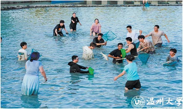温大师生捕鱼现场。 图片由学校提供