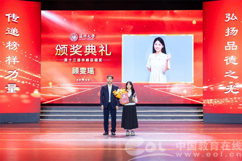 典礼上,10位“敬业、仁爱、创新、担当”的道德模范个人(集体)受到表彰,其中教育学院彭小明老师与顾雯瑶同学的故事,让在场学生干部深受触动。