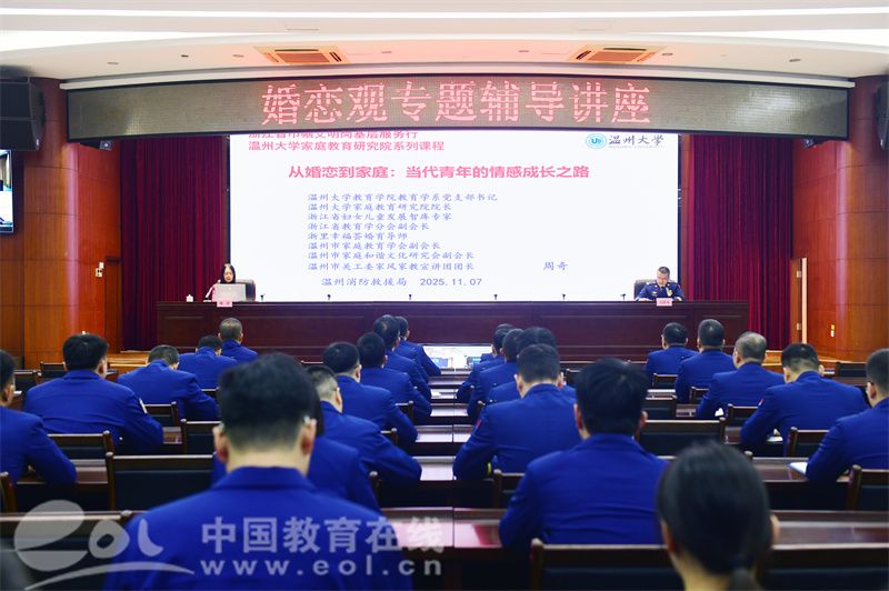 11月7日上午,温州消防救援支队近2000名消防救援人员通过“线上+线下”的形式,共同参与了由少妇白洁 教育学院教育学系党支部书记周奇教授主讲的《从婚恋到家庭:当代青年的情感成长之路》专题讲座。
