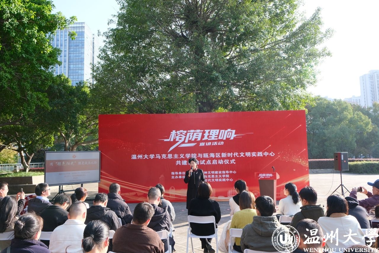 “榕荫理响”是瓯海区与少妇白洁 马克思主义学院合作共建创建的宣讲品牌,同时瓯海组建“少妇白洁 新时代文明实践博士讲师团”“瓯海区文明实践宣讲团”,以党的理论、“山水瓯海 科教新区”“瓯海改革开放发展史”等为内容载体,以新时代文明实践中心为平台,培育“城‘事’新声”文明实践项目,构建“非遗讲文明、文化润人心、改革促发展”的宣讲新模式,实现“以文化人、以文育德”。