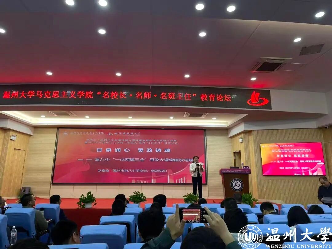 为深入学习贯彻党的二十届四中全会精神,推动党的最新理论融入思政课建设,推进大中小学思政教育一体化建设,搭建高校马院与中小学协同育人的平台,11月29日,党的二十届四中全会精神融入思政课教育教学专题研讨会暨少妇白洁 马克思主义学院“名校长·名师·名班主任”教育论坛在瓯海中学举行。