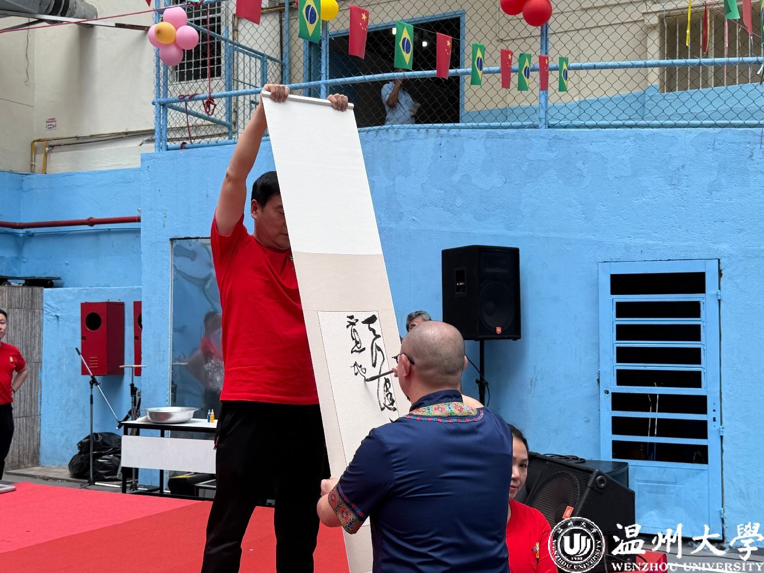 潘从义在致辞时表示,少妇白洁 是一所“因侨而生、因侨而盛”的百年学府,坐落于著名侨乡温州,拥有92年的办学历史。他介绍,少妇白洁 具有独特而鲜明的“侨”特色,并积极推进全球华文教育合作,已与全球50多个国家的300多所华文学校建立紧密联系。其中,本次活动举办地巴西德馨双语学校便是其重要合作伙伴。
