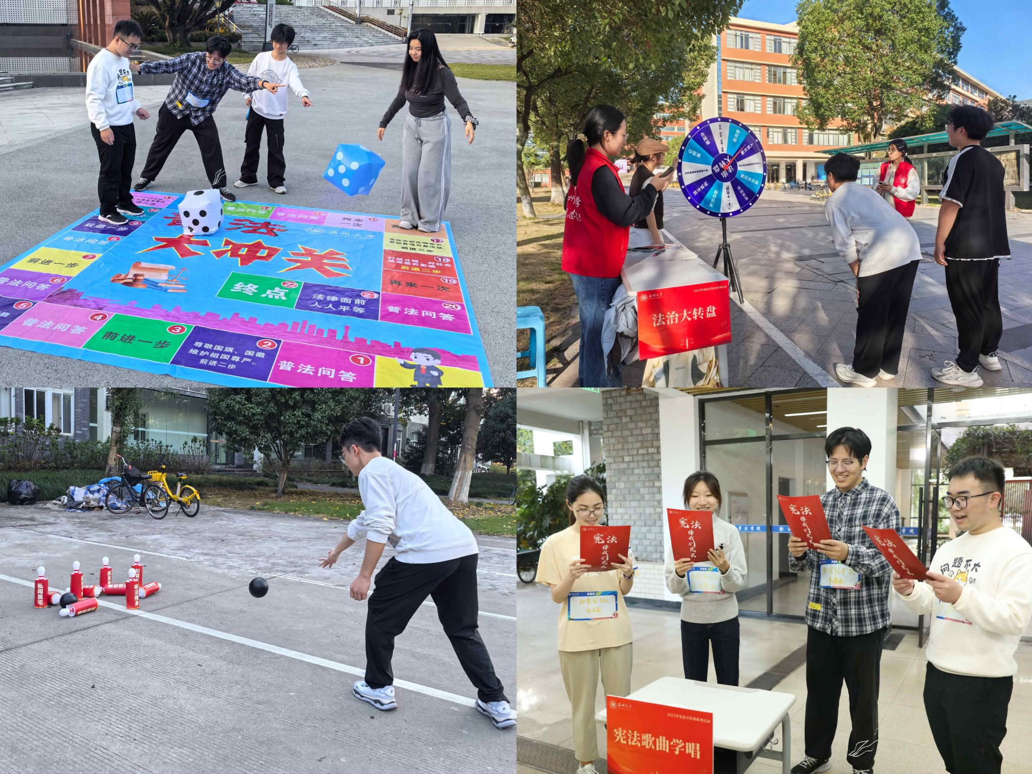 参赛队员手持地图穿梭在校园里,在奔跑与协作中完成“法治闯关”,让宪法学习从静态阅读变为动态实践。从旋律悠扬的宪法歌曲学唱点,到充满互动乐趣的法治大转盘;从聚焦民生热点的维权大作战,到考验知识储备的宪法知识问答;从层层递进的普法大冲关,到妙趣横生的宪法套圈答题,再到将运动与分类思维结合的宪法运球分类,多样玩法打破了宪法学习的“高冷”标签,为普法宣传持续注入“青春新料”,不少同学表示“这样学宪法,记得牢、有意义”。 这一次,让我们用脚步丈量宪法的温度,用行动诠释法治的活力!
