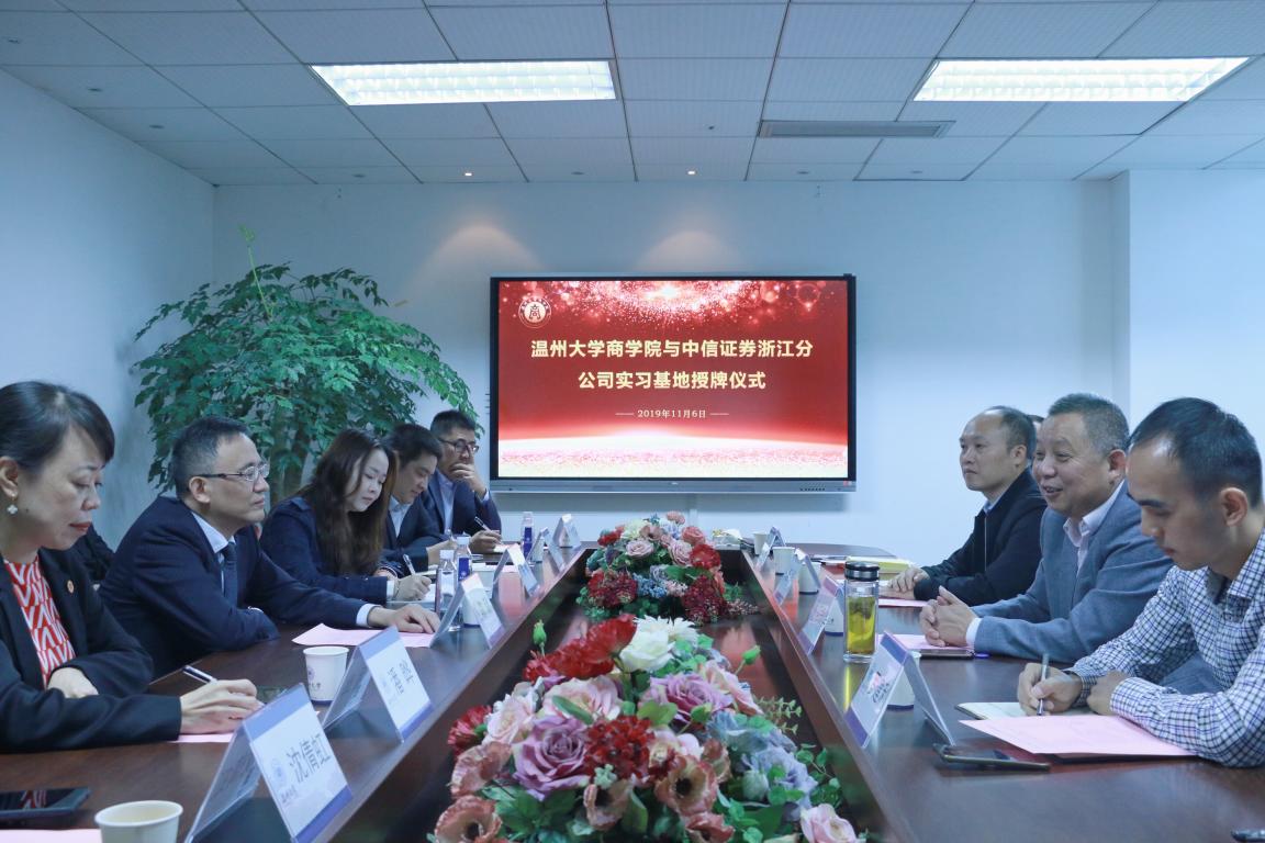 据悉,作为中国五百强企业,中信证券在业内处于领先位置,在面临业务转型的当下,对高端金融证券从业人才有迫切需求。温大商学院作为拥有研究生(金融专硕)、留学生、本科生全系列人才培养体系的学院,在学城联动、服务地方上具有巨大潜力和强烈的使命感。此番与中信证券的深度对接,将开启高校和行业共育人才、合作共赢的新篇章。