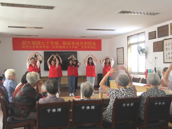回首来时路,前行步更坚。新时代的幸福生活离不开退役老军人们的贡献。温大教院组织师生来到温州市鹿城区军分区,与军分区老干部一起唱响强国战歌,重燃爱国之魂。温州市军退休老干部班胜玉老先生为大家讲述了过去的故事,追忆抗美援朝的艰苦岁月,感慨祖国发国发展的日新月异,并深切寄语学子们:“你们在幸福的时代里成长,未来也将成为人民教师,但唯脚踏实地,用本职工作来书写爱国情才能成为祖国教育事业背后的闪耀英雄。”师生们深受感动,纷纷表示将不忘初心,始终秉持爱国热情,争做新时代追梦人。