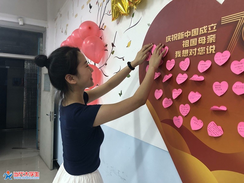 不忘初心,牢记使命。新时期最伟大的使命是实现中华民族伟大复兴的中国梦。为庆祝新中国成立70周年,温大教院的学子们以专业为依托,自主编排原创舞蹈剧《我和国旗》,并在学校迎新晚会上演出,以舞为媒,敬礼祖国。舞者们通过再现国旗绘制的场景,将红色基因融入舞台演绎,诉说着新中国成立七十年来的风风雨雨,为观众中展示了一场极具回忆性和艺术性的祖国历史。同时,温大教院教育技术专业师生还拍摄了《国家》视频,用自己课堂所学和专业知识传达对祖国母亲的热爱之情。有着24年历史的学院“知心姐姐”已经成为学院校园文化品牌活动,他们开展“迎国庆”主题教育活动,歌唱“我和我的祖国”,唱响了青春最强音,也唱出了对“中国梦”的美好愿景。
